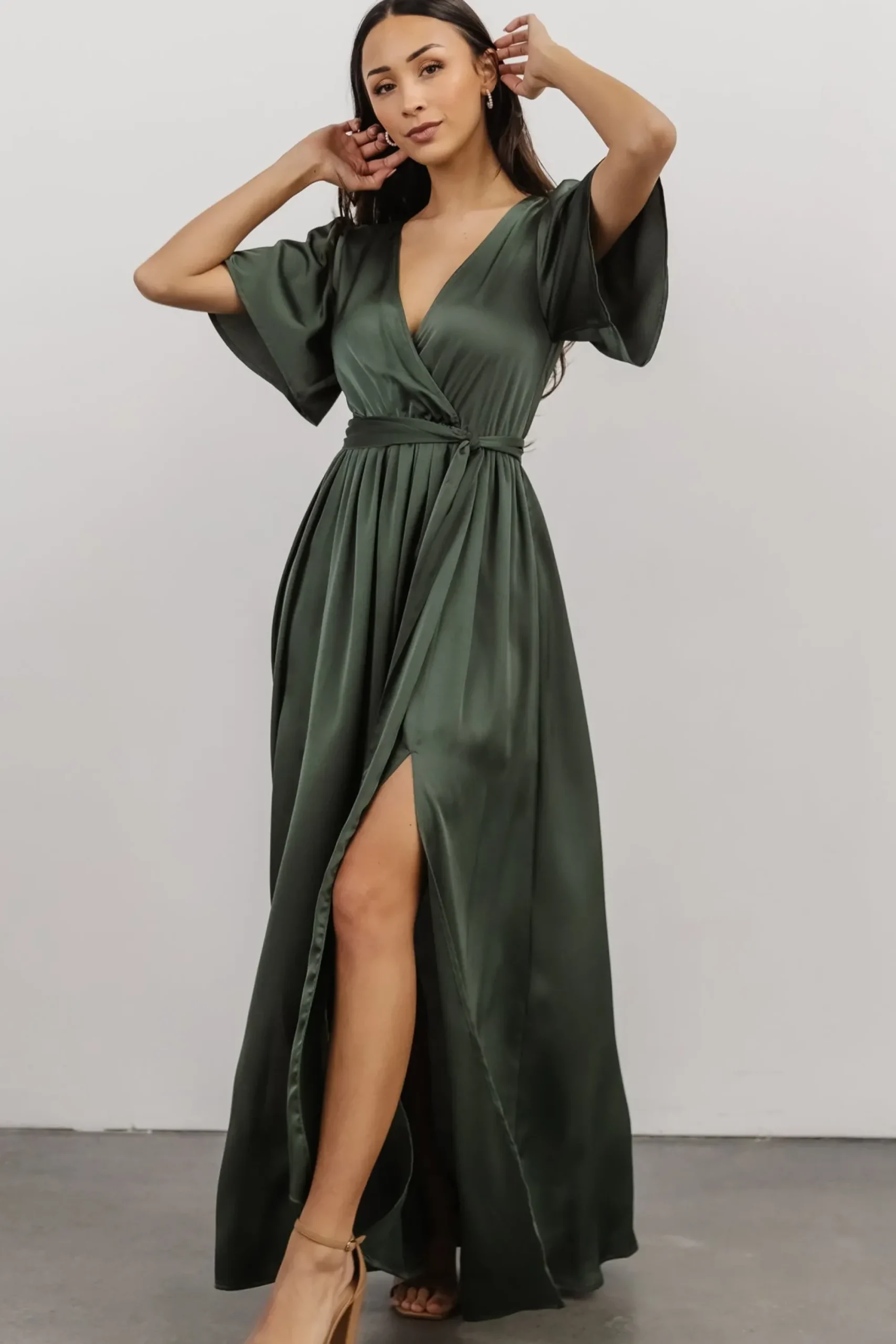 Best Baltic Born Sicily Satin Maxi Dress | Dusty Green
