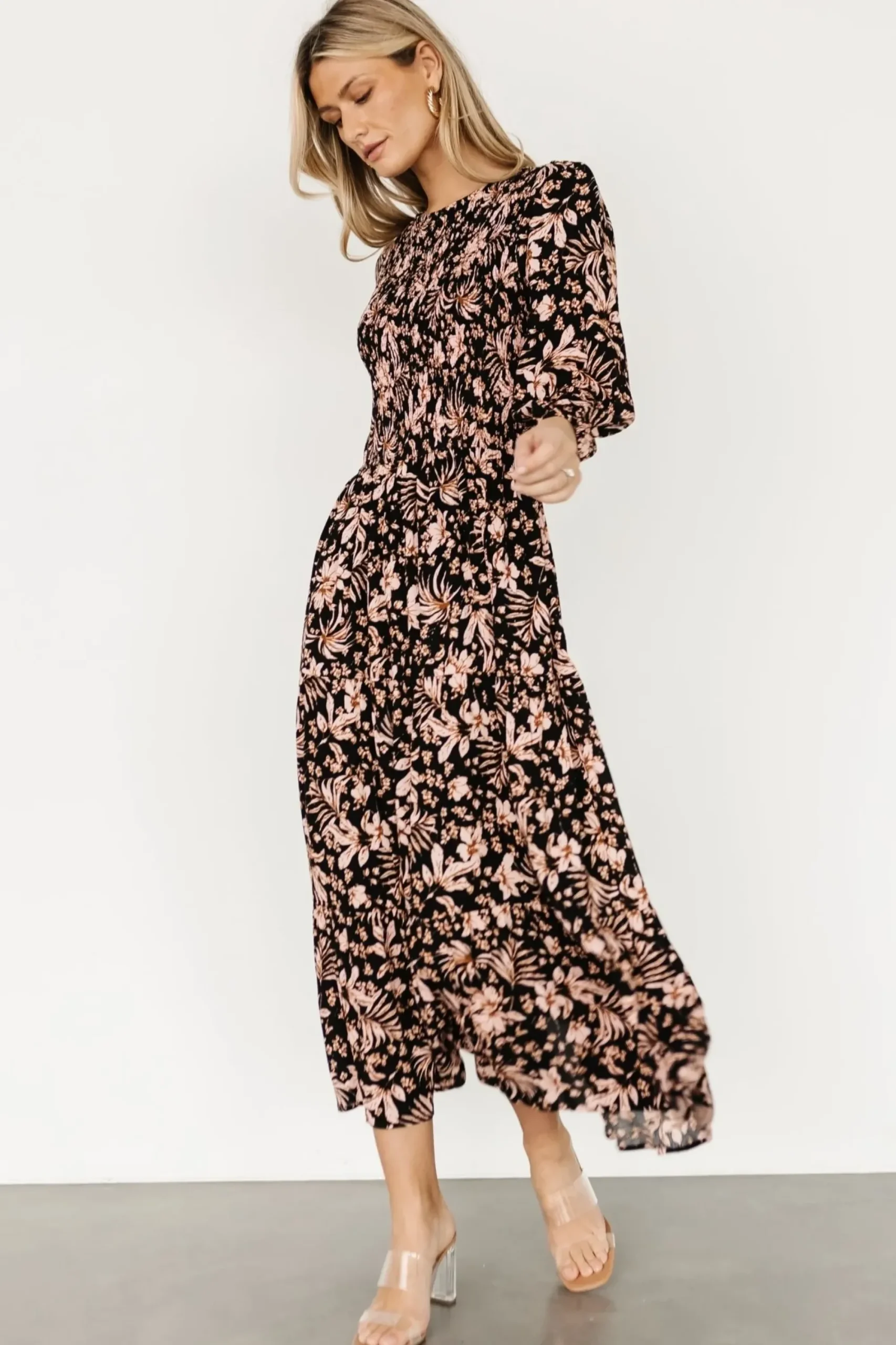 Clearance Baltic Born Rochelle Smocked Midi Dress | Black Multi Floral