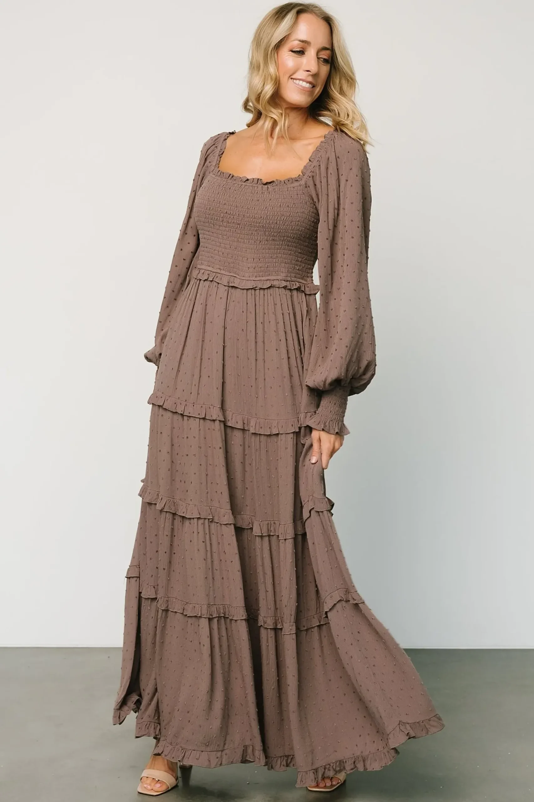 Discount Baltic Born Amanda Smocked Dotted Maxi Dress | Brown
