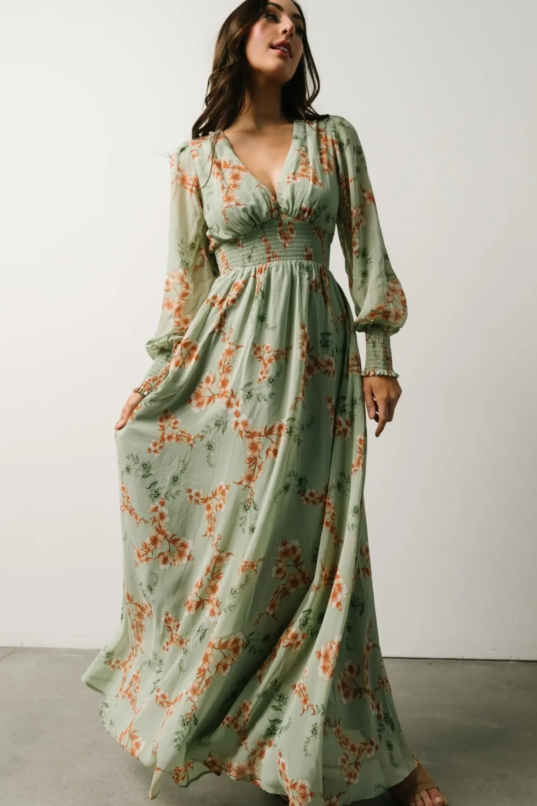 Discount Baltic Born Olivia Maxi Dress | Sage + Peach Floral