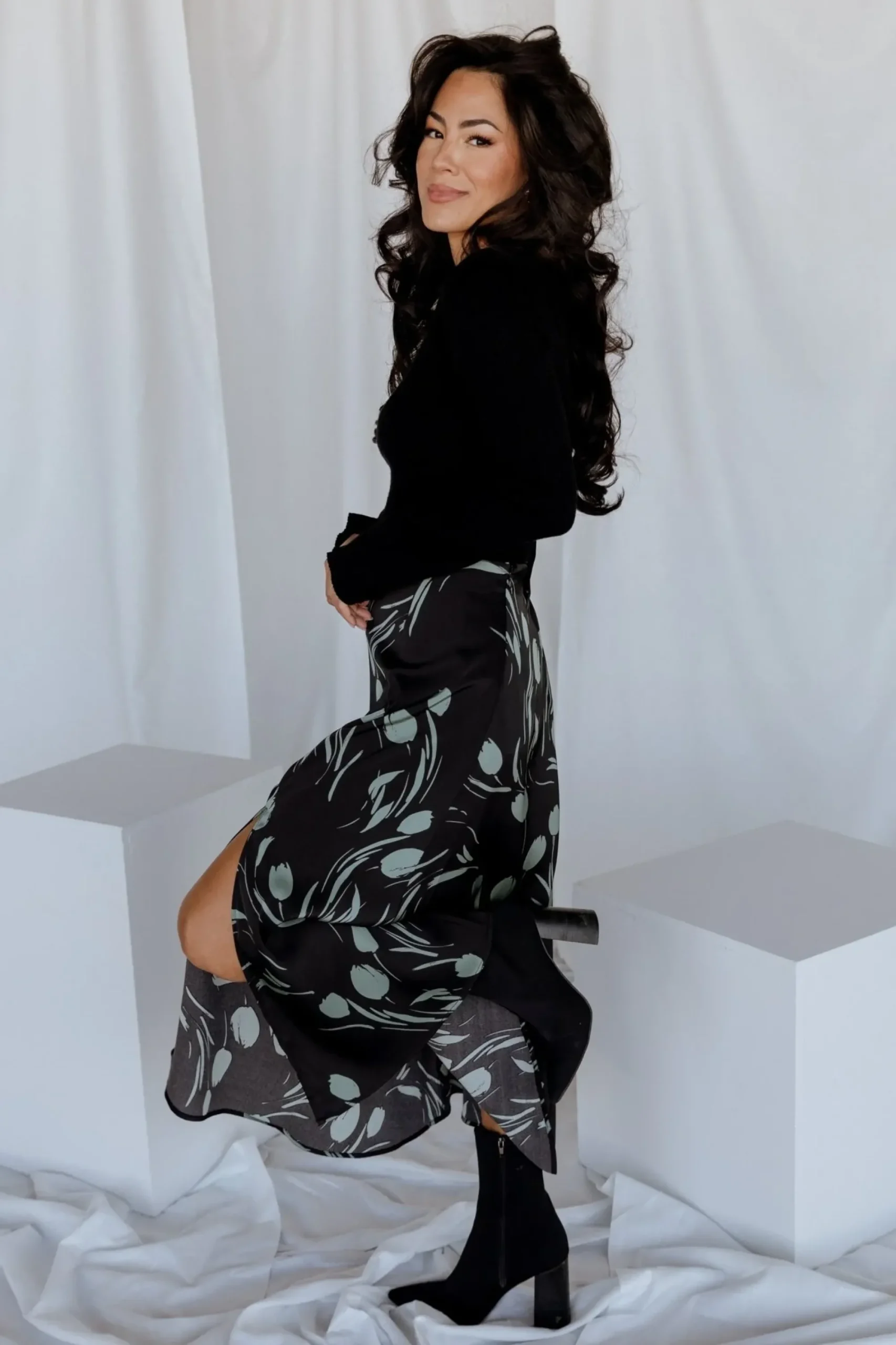 - Gorgeous black with sage green floral print