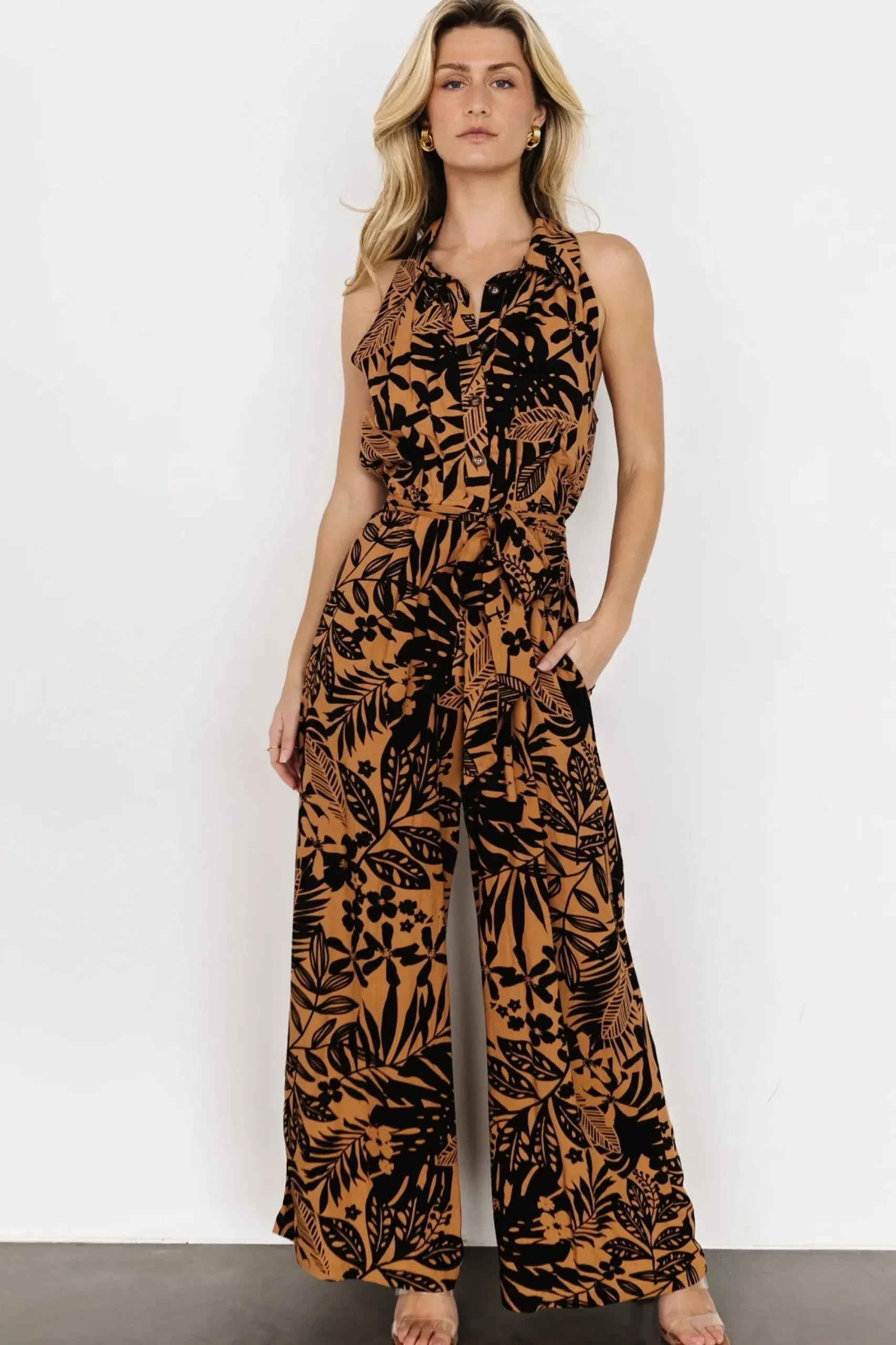 Fashion Baltic Born Zendaya Jumpsuit | Camel + Black Print
