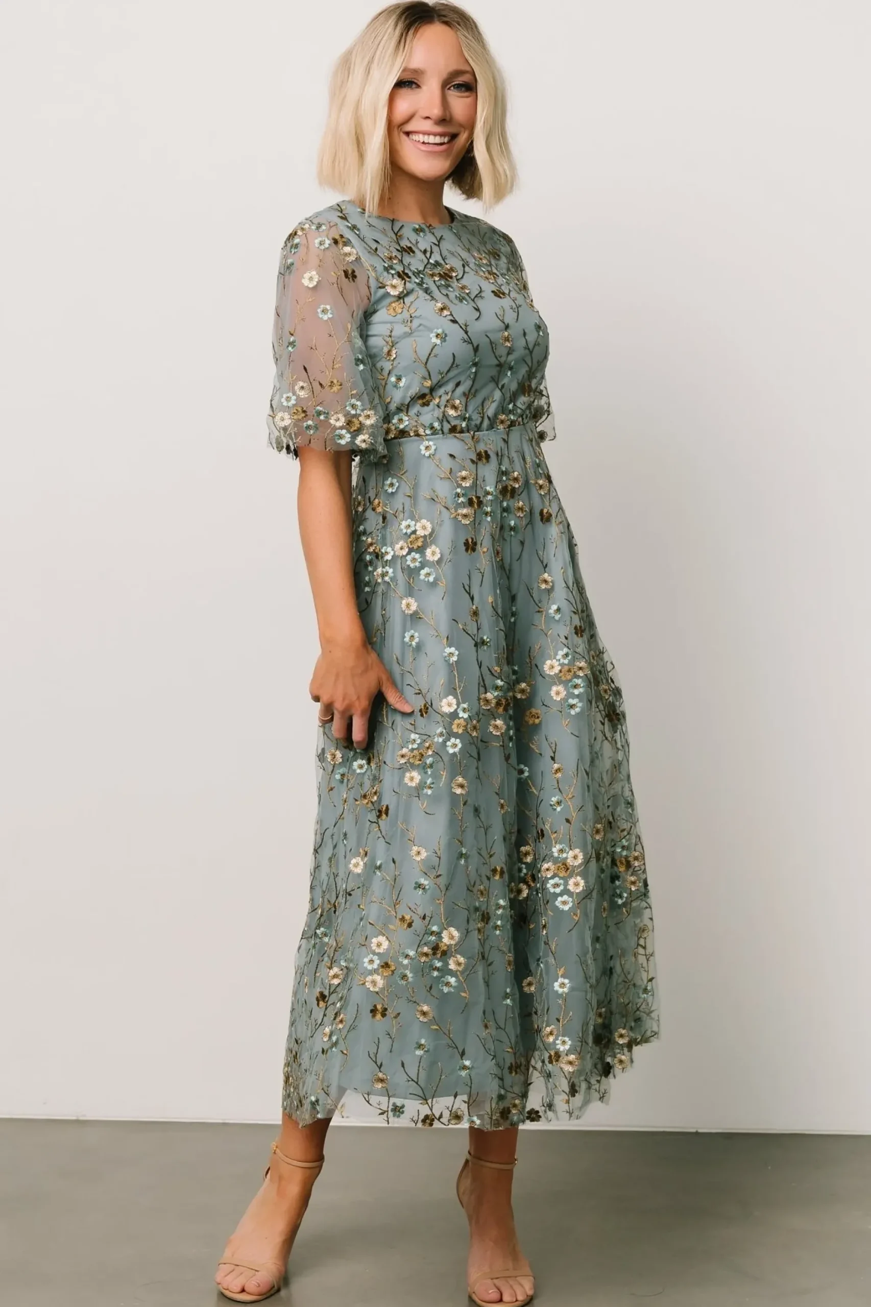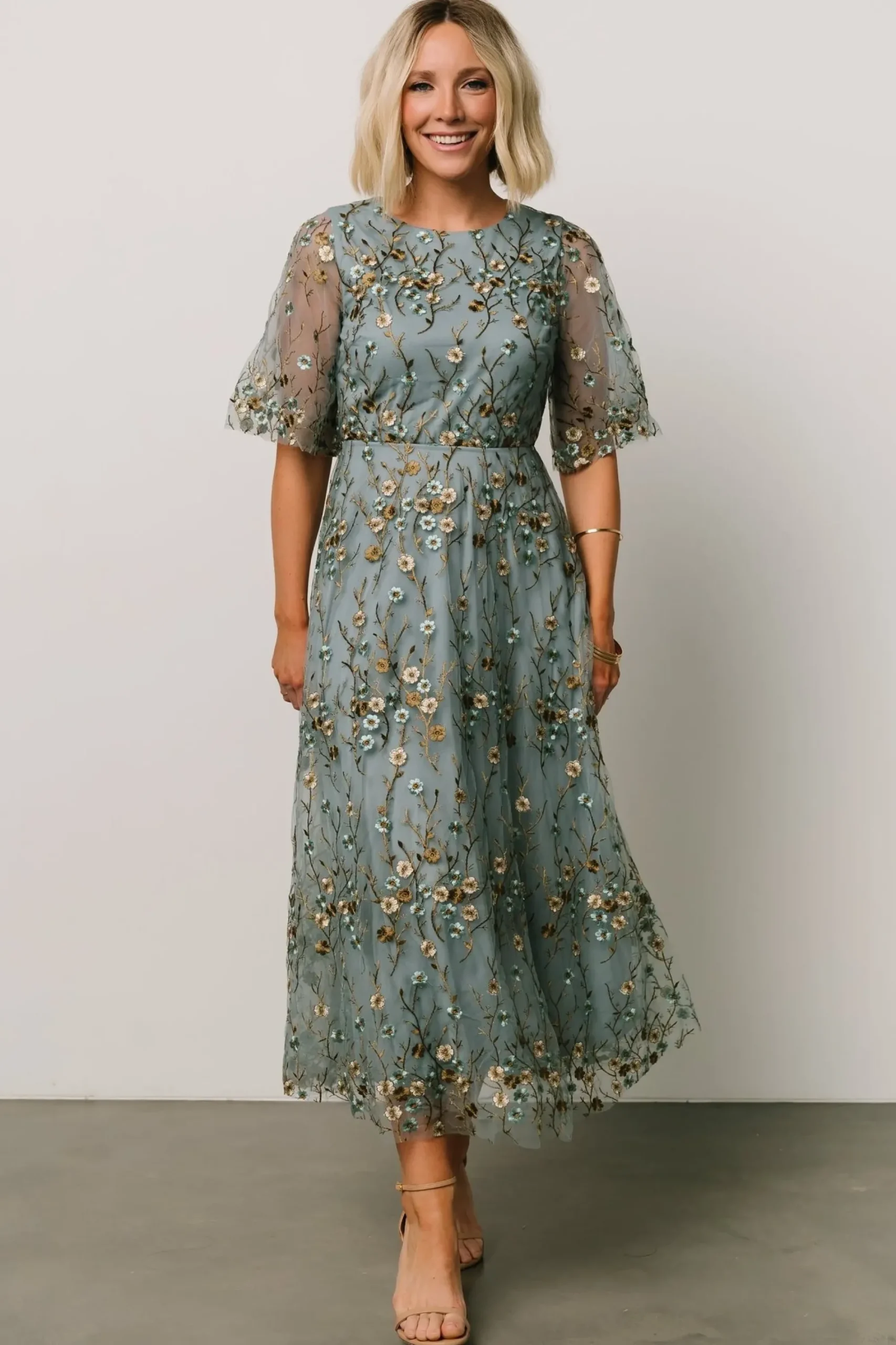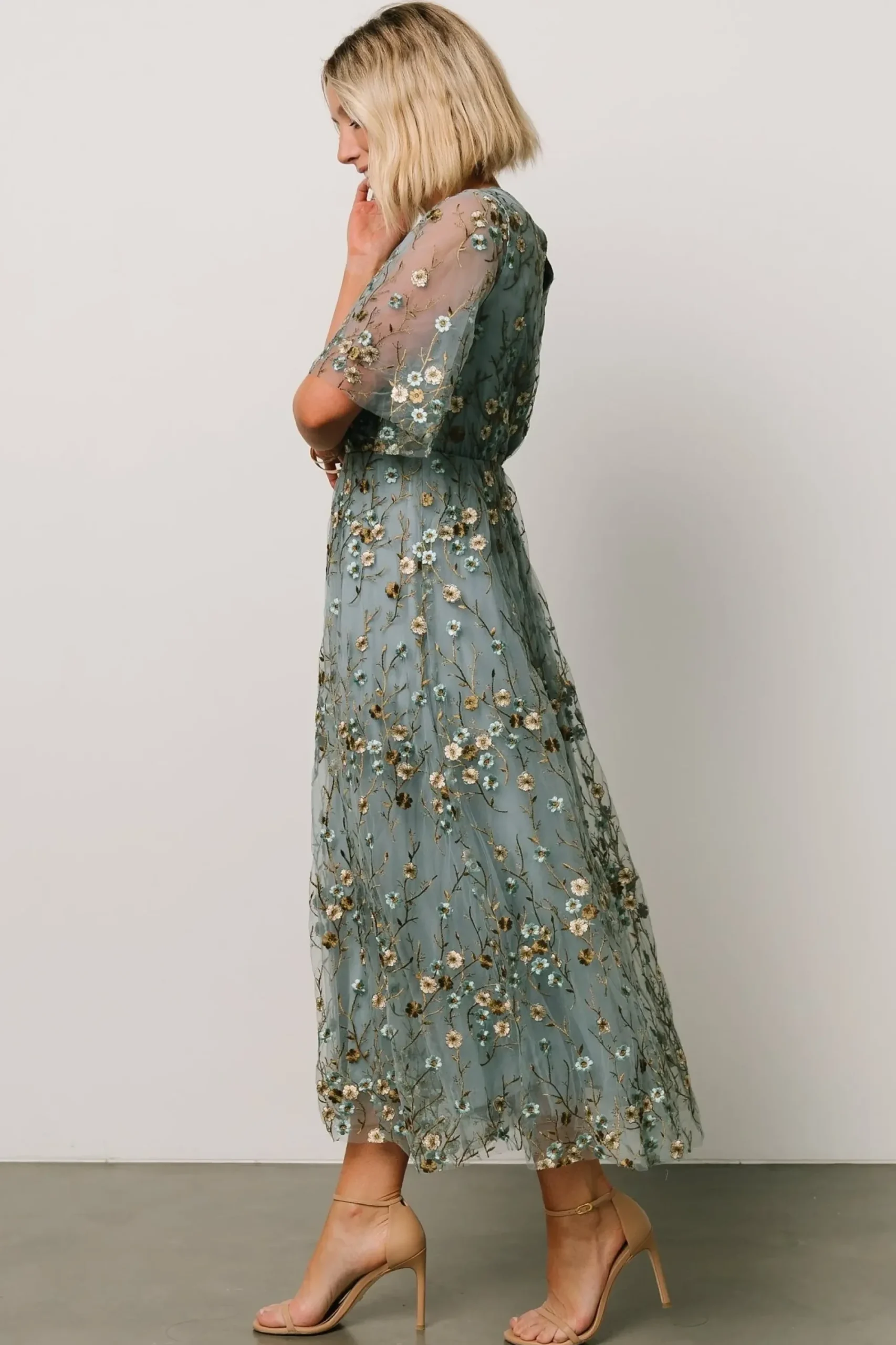 New Baltic Born Arabella Embroidered Tulle Maxi Dress | Dusty Blue Floral