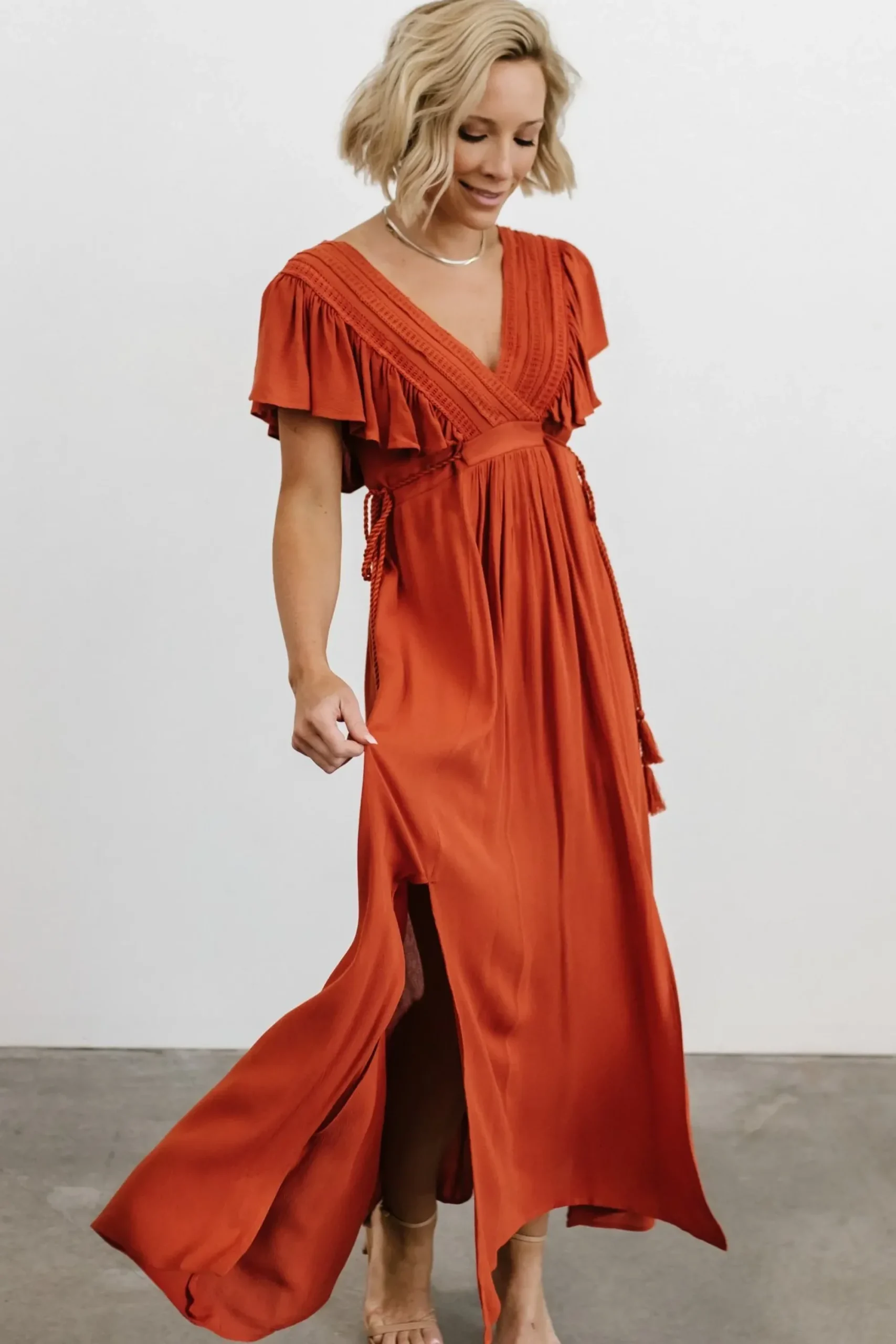 - Waist can be cinched with side ties for a custom fit