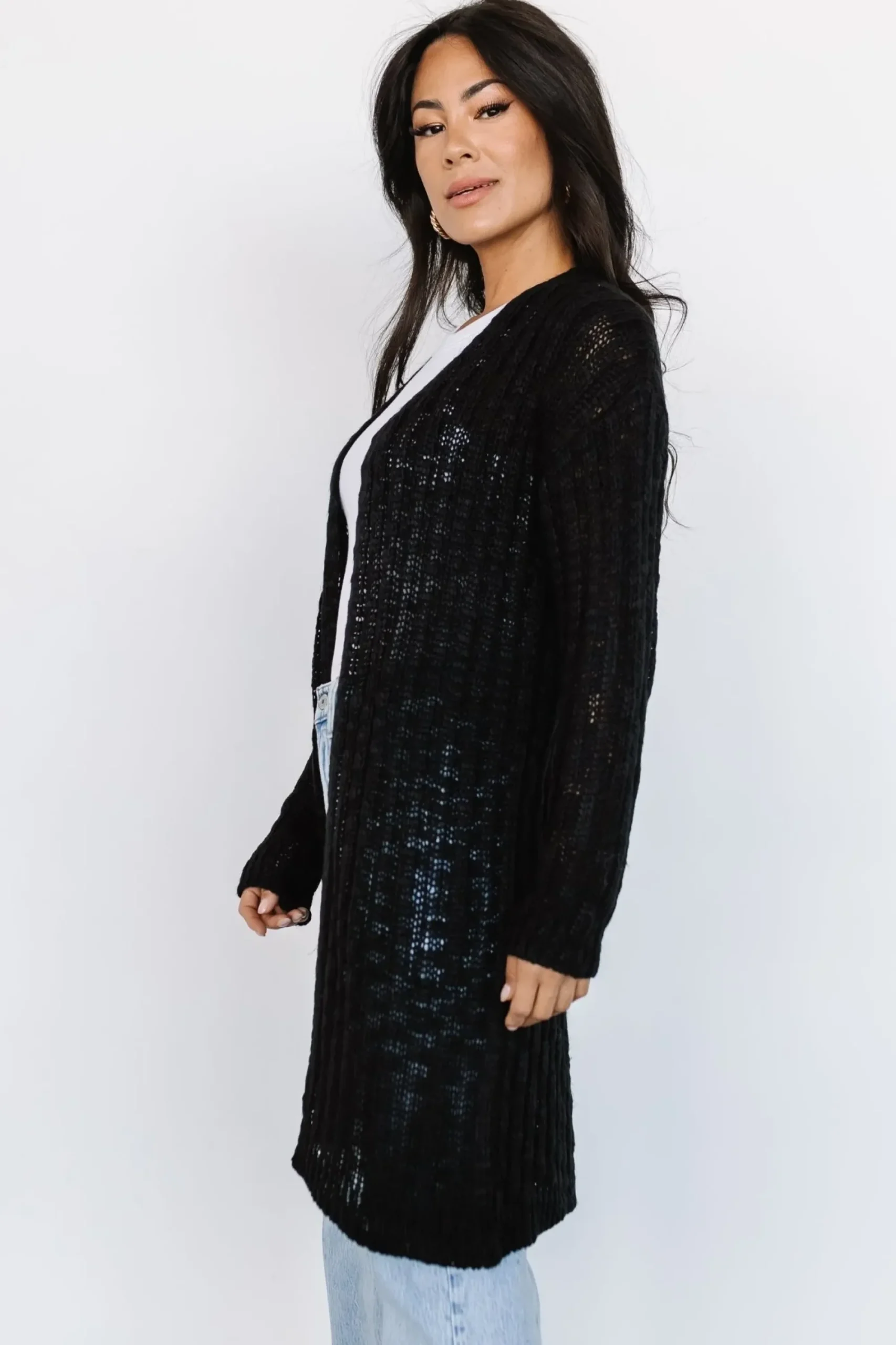 - Open-front cardigan style
