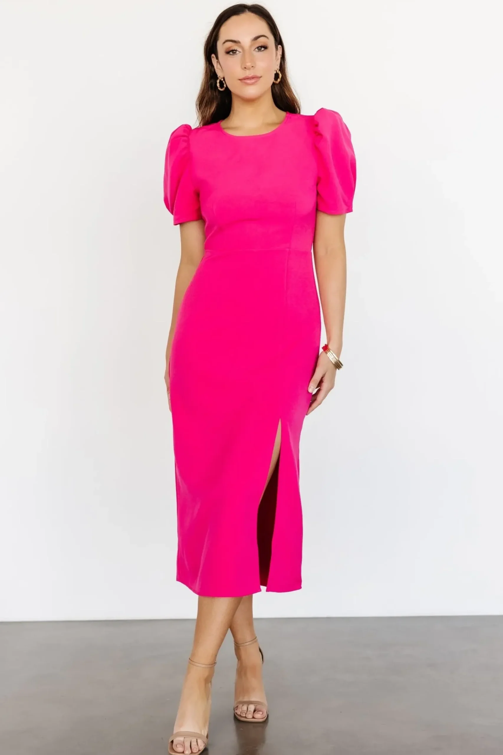 Online Baltic Born Younge Puff Sleeve Midi Dress | Pink