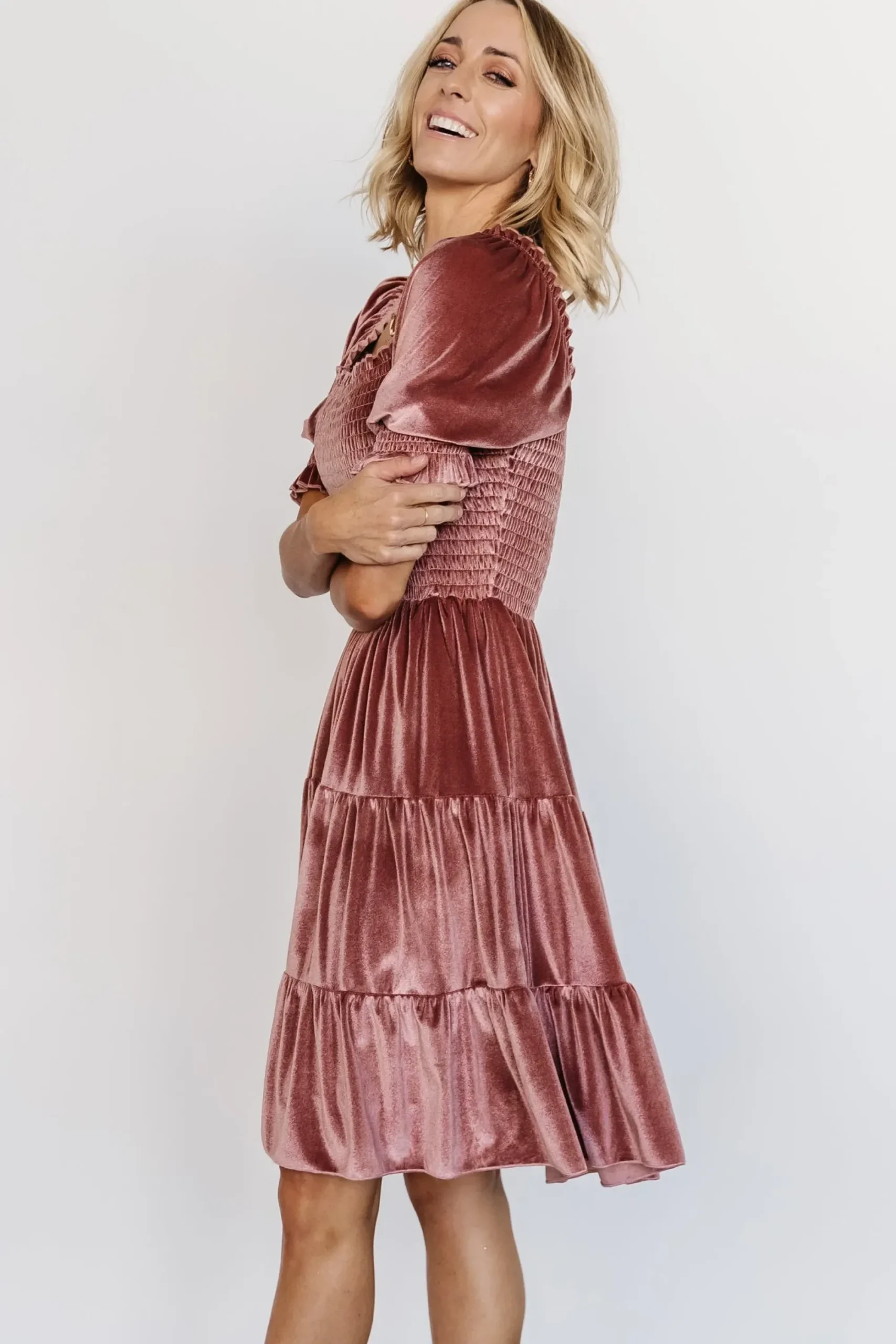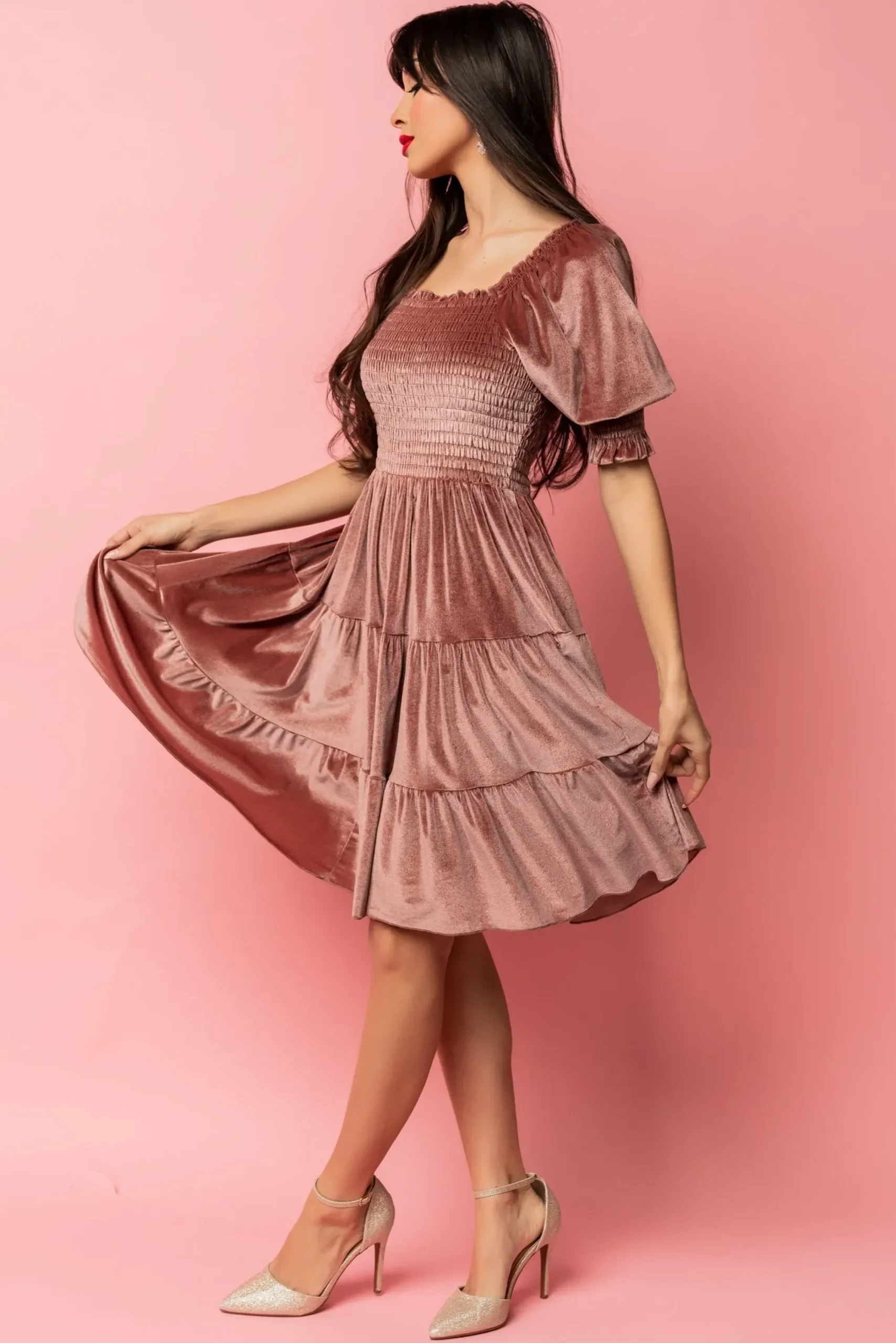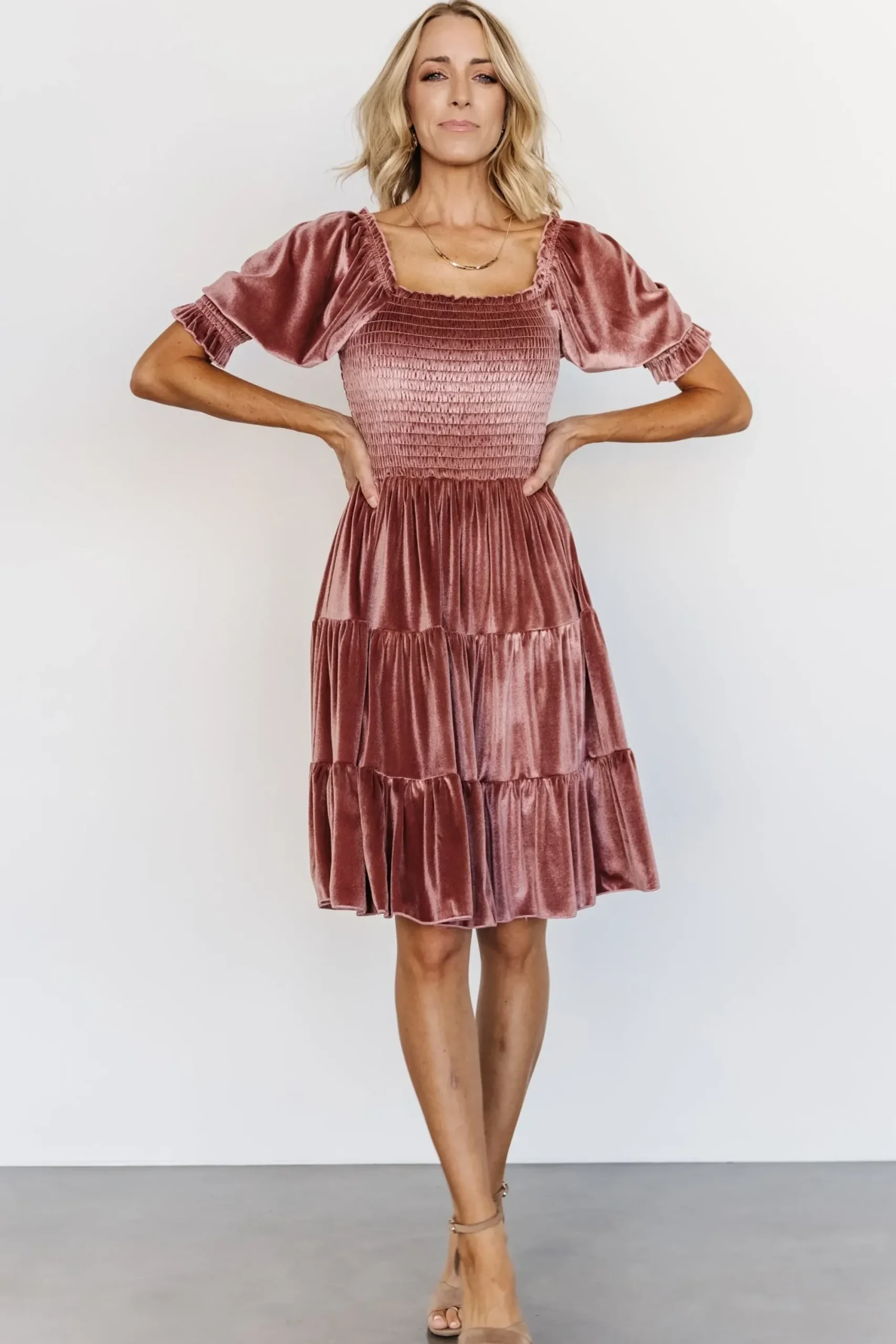 Sale Baltic Born Bliss Smocked Velvet Short Dress | Vintage Rose