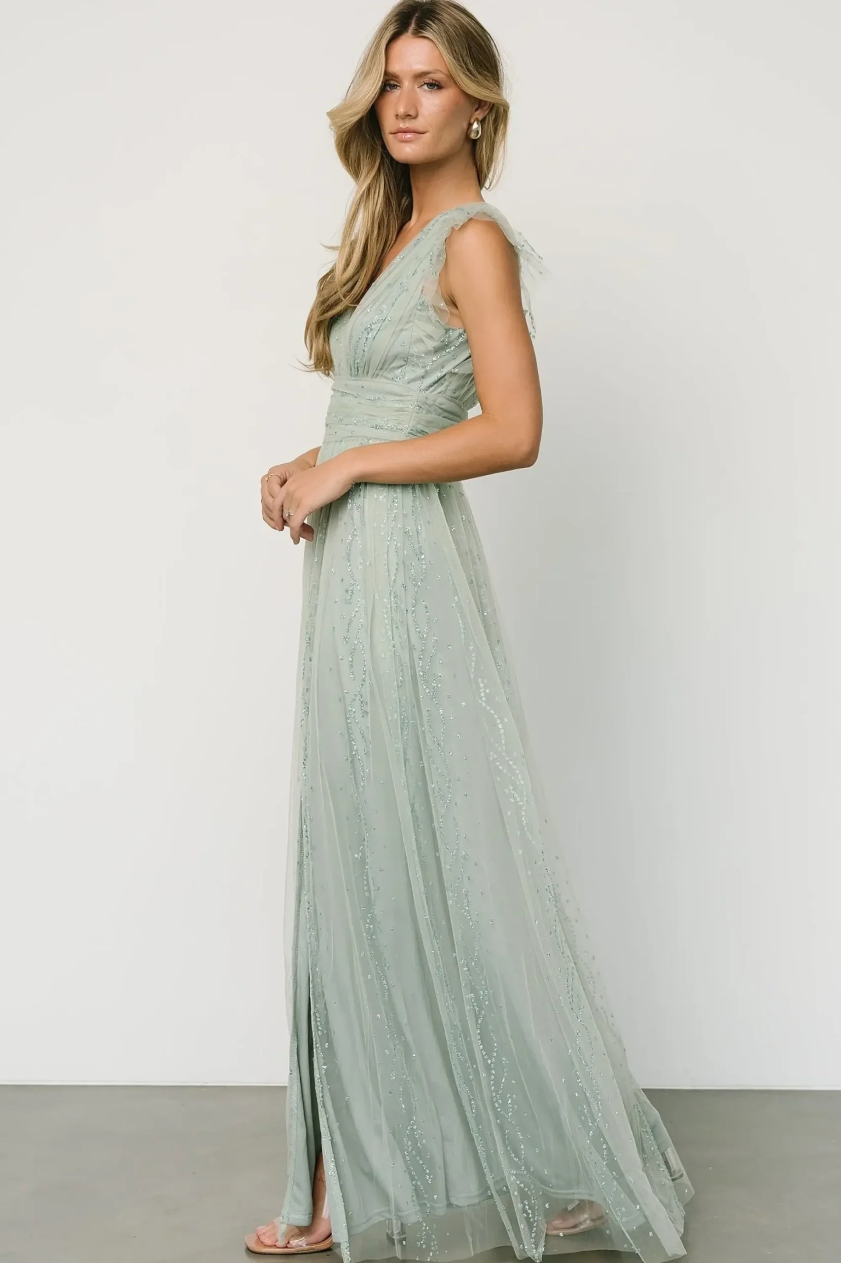 Best Baltic Born Annika Sequin Mesh Maxi Dress | Dusty Sage