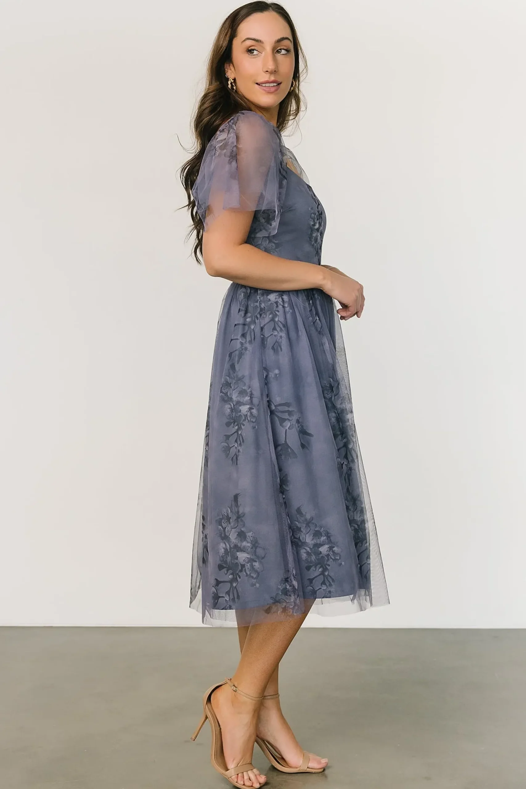 Clearance Baltic Born Gwyneth Tulle Midi Dress | Slate Blue Multi