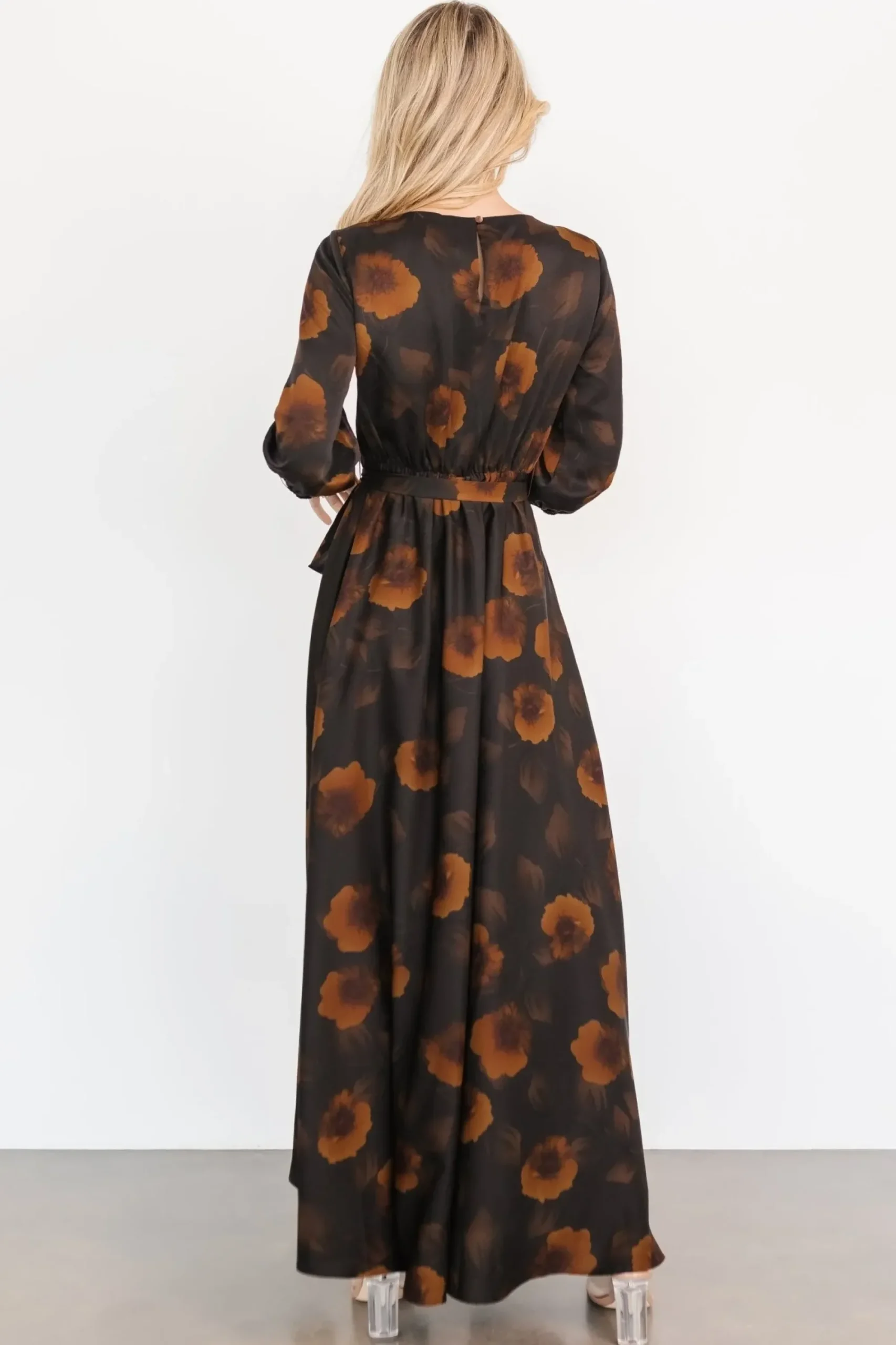 Be the first to review “Clearance Baltic Born Paula Satin Maxi Dress | Deep Brown Floral” Cancel reply