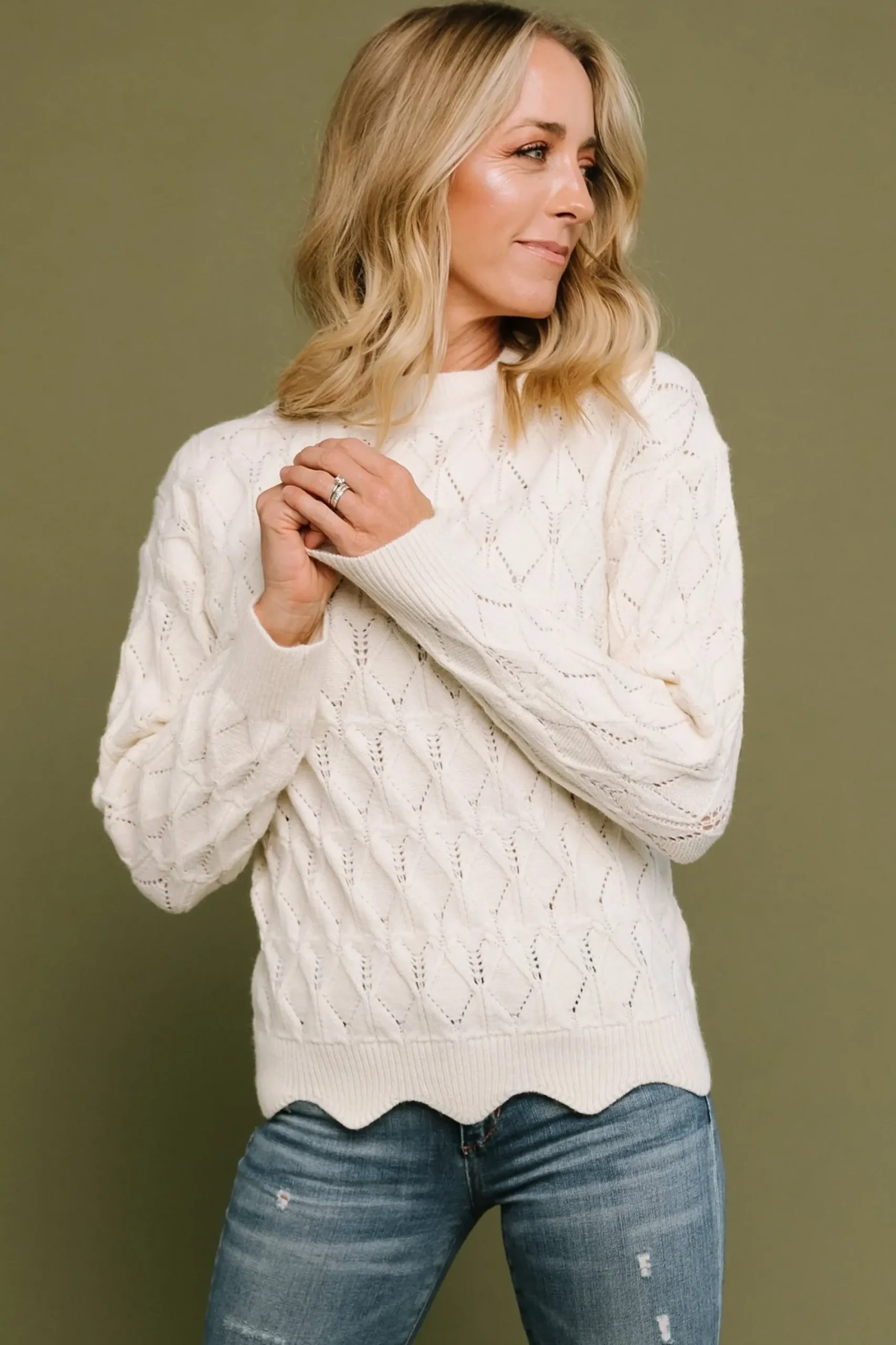 Clearance Baltic Born Perle Eyelet Scallop Sweater | Cream