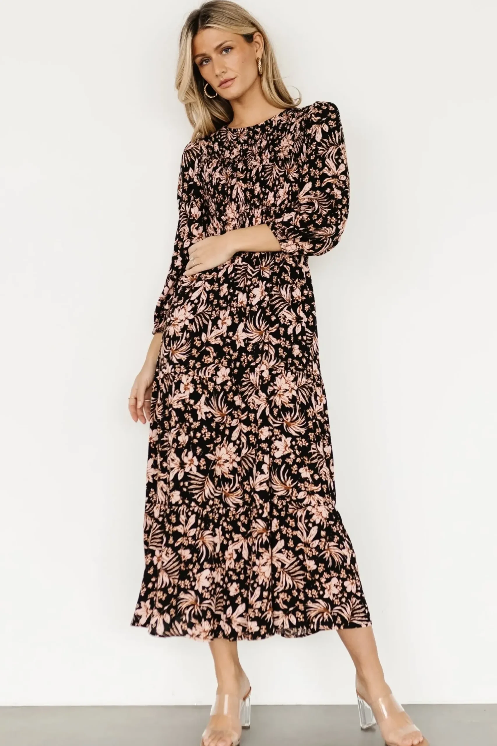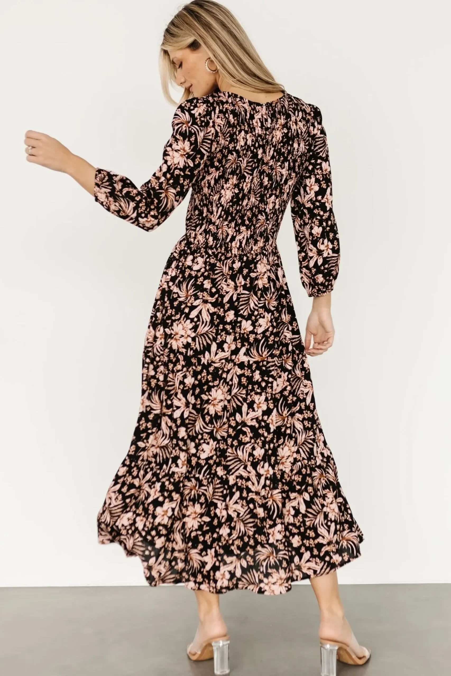 Clearance Baltic Born Rochelle Smocked Midi Dress | Black Multi Floral