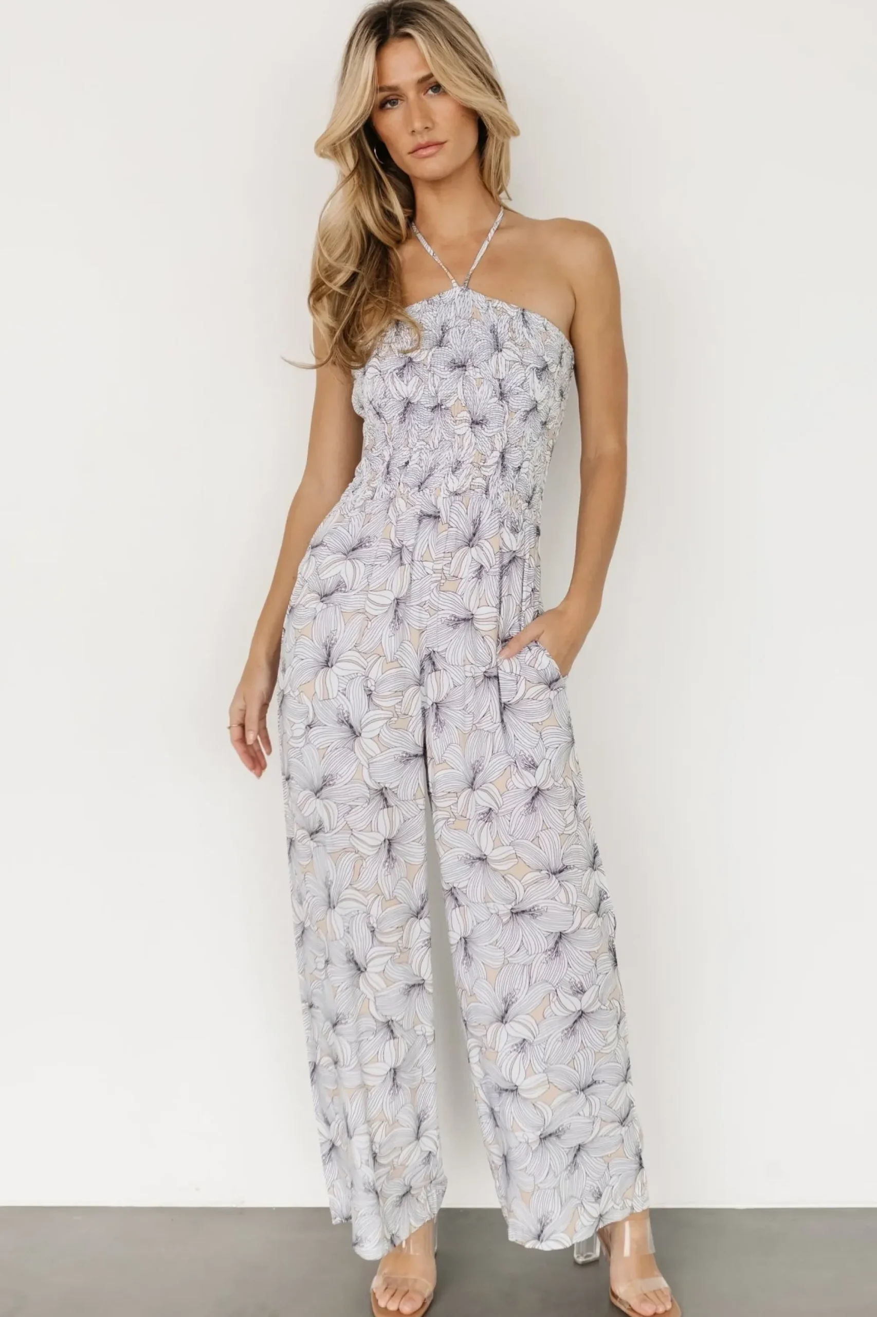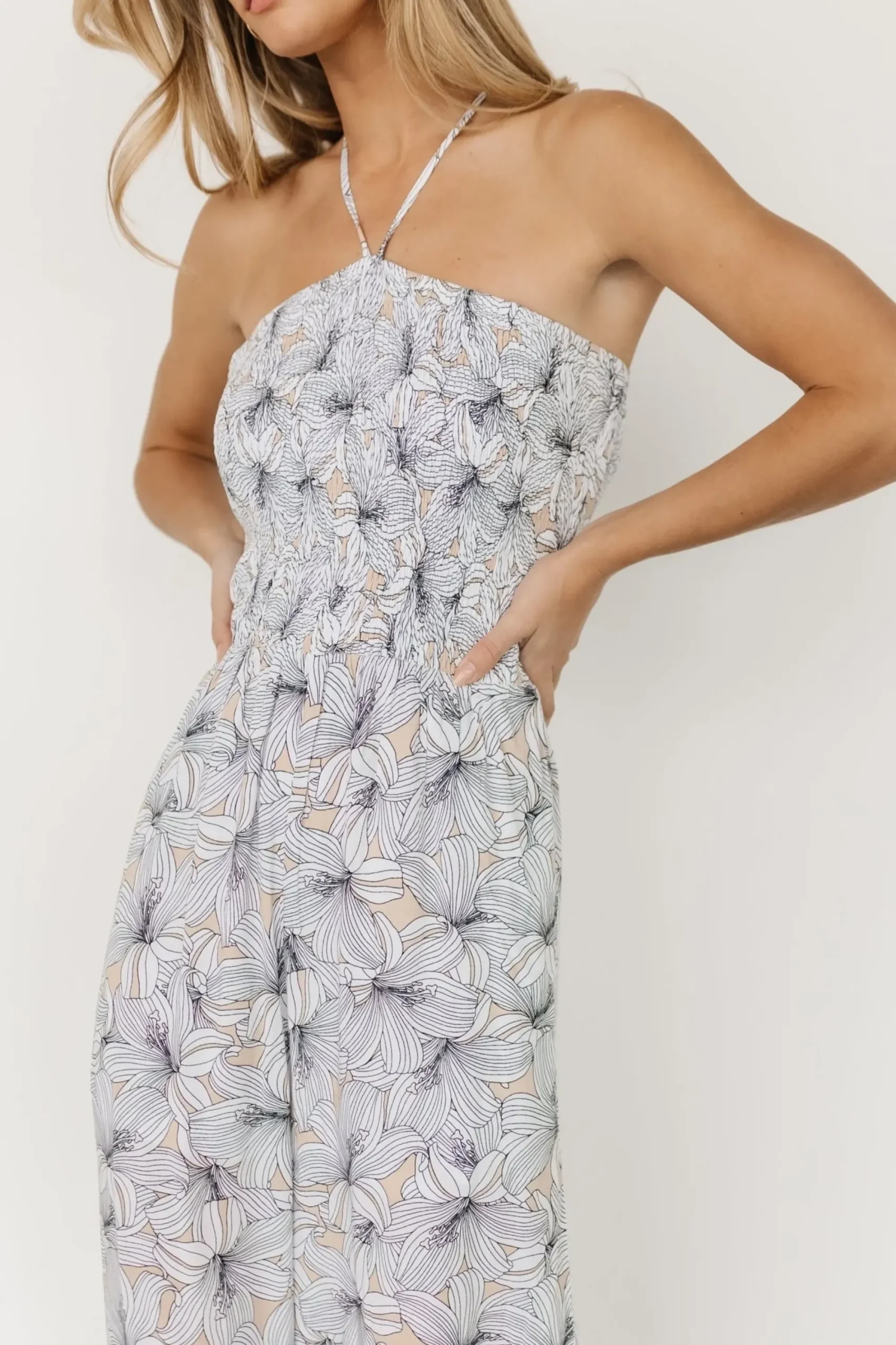 Clearance Baltic Born Santa Ana Halter Jumpsuit | Taupe + White