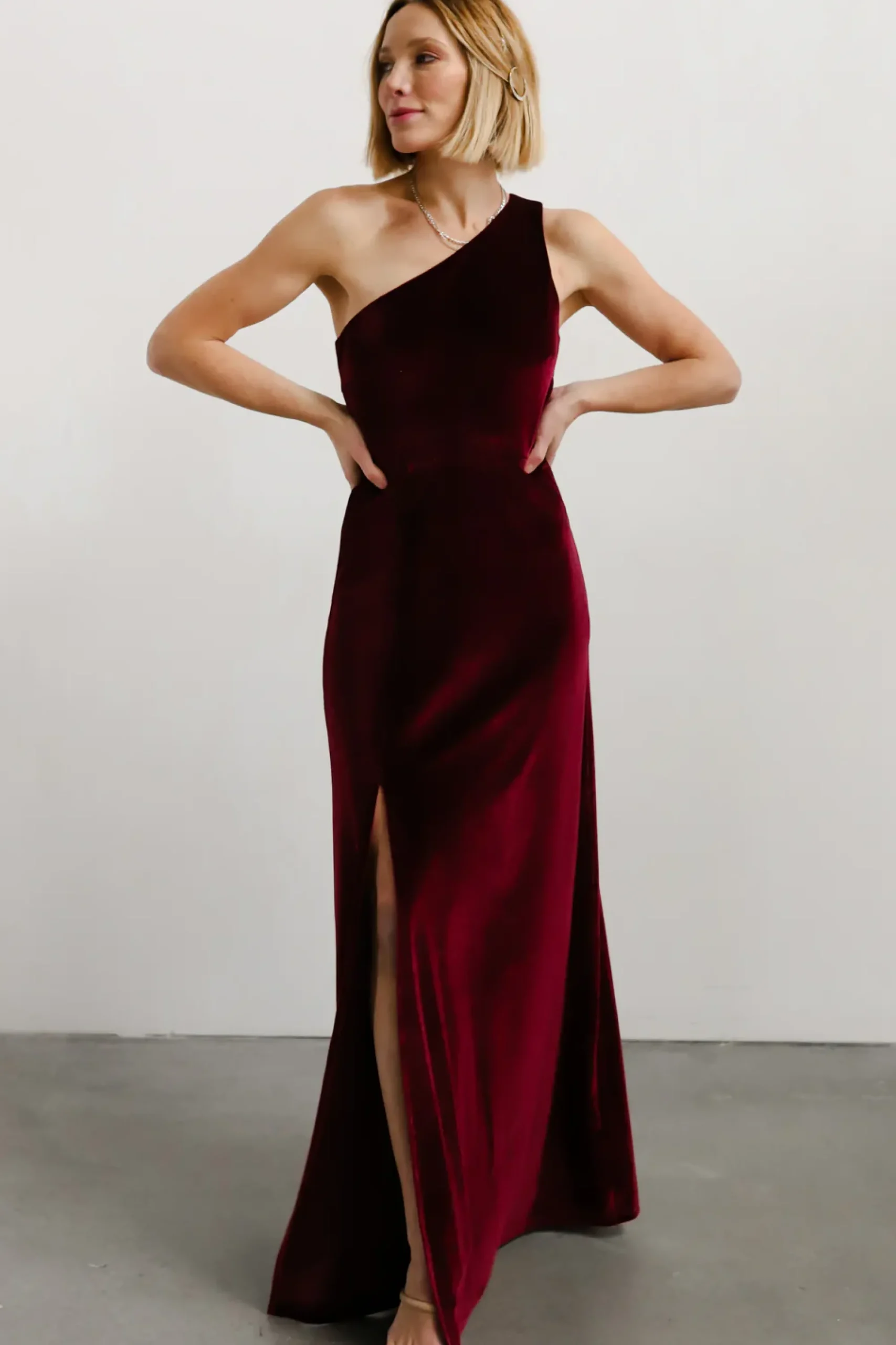 Clearance Baltic Born Tatiana Velvet One Shoulder Maxi Dress | Merlot