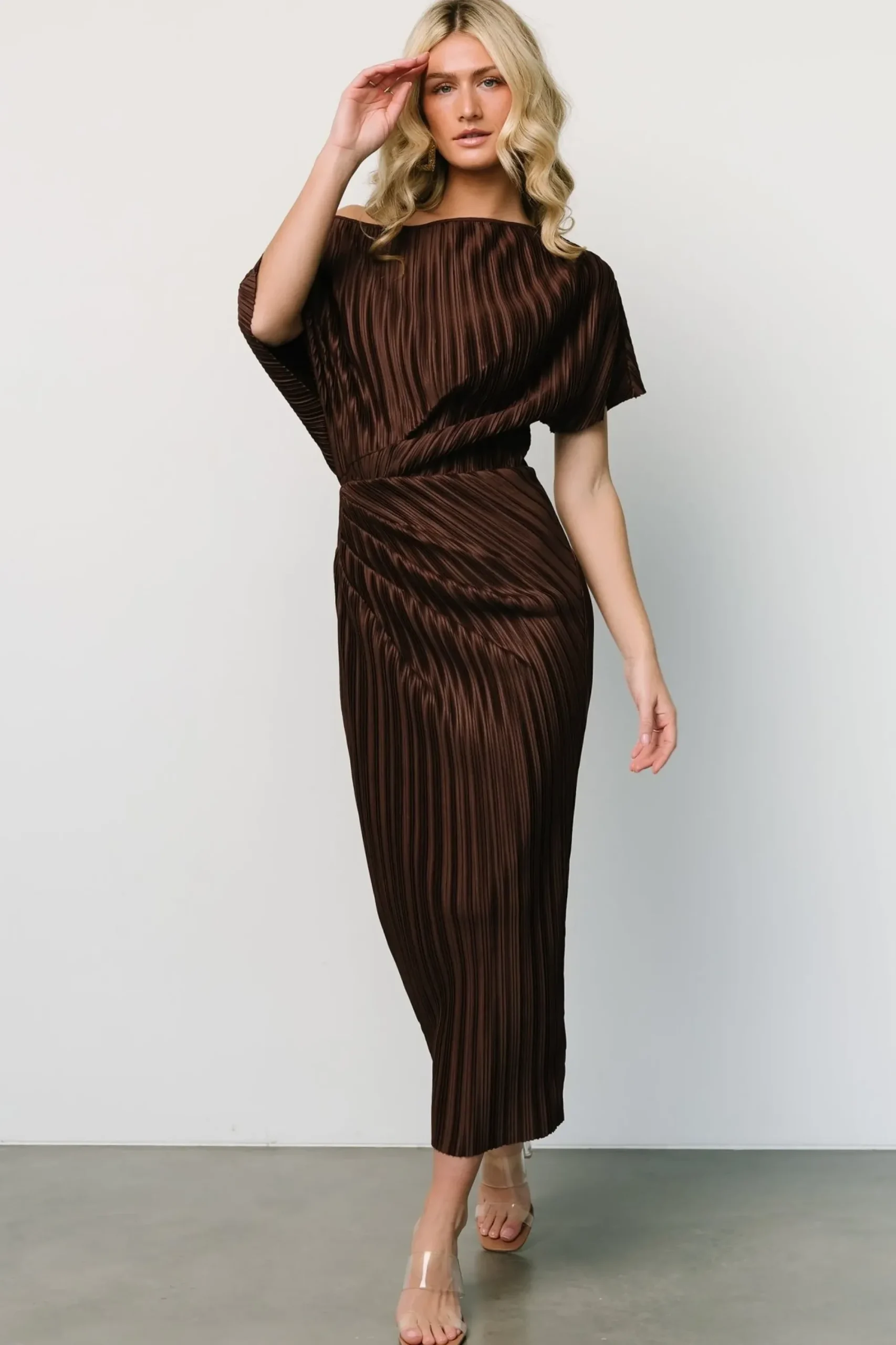 Clearance Baltic Born Winslow Pleated Midi Dress | Dark Brown
