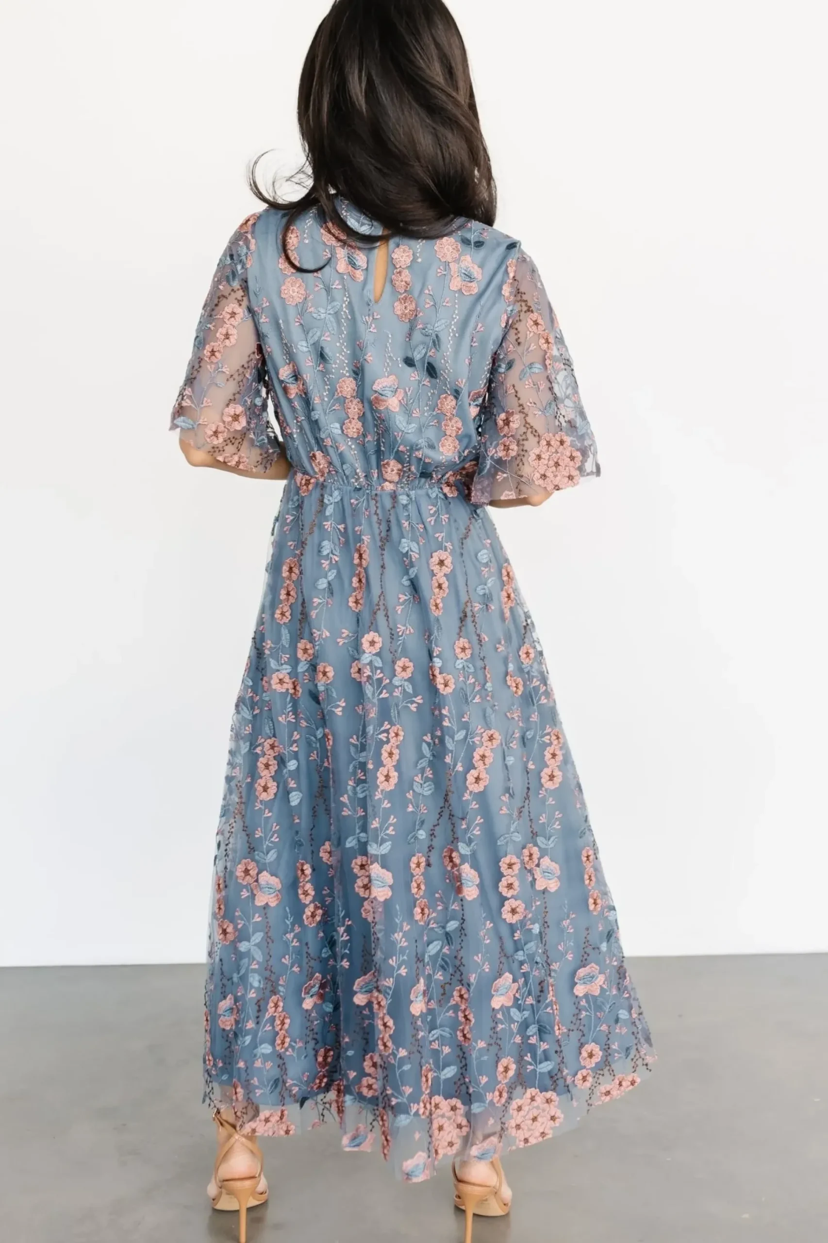 Discount Baltic Born Arabella Embroidered Tulle Maxi Dress | Blue + Pink