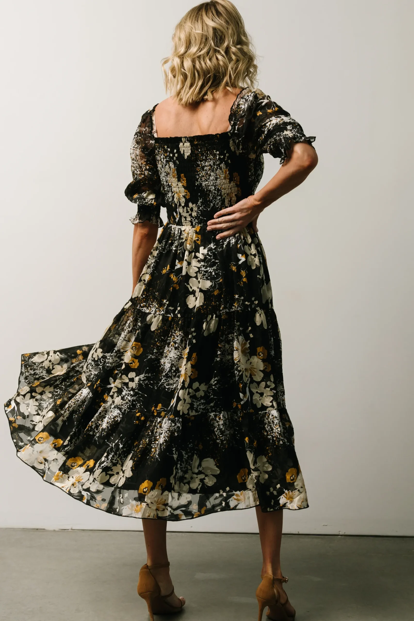 Discount Baltic Born Fabian Jacquard Midi Dress | Black Floral