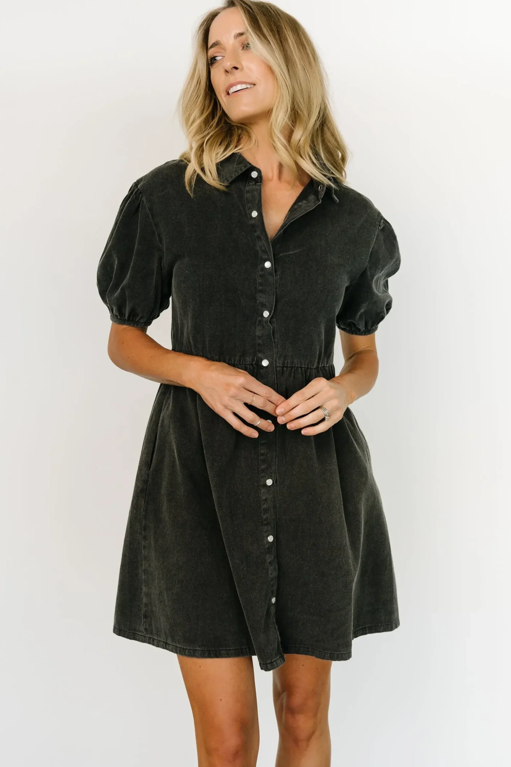 Be the first to review “Fashion Baltic Born Fontana Puff Sleeve Short Dress | Washed Black” Cancel reply