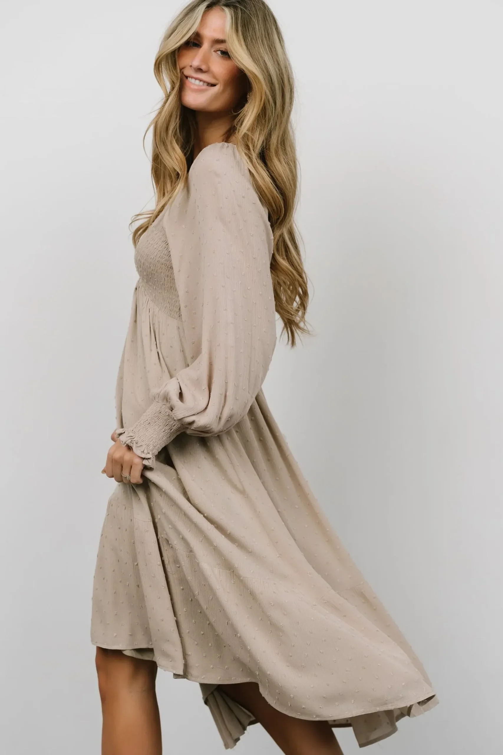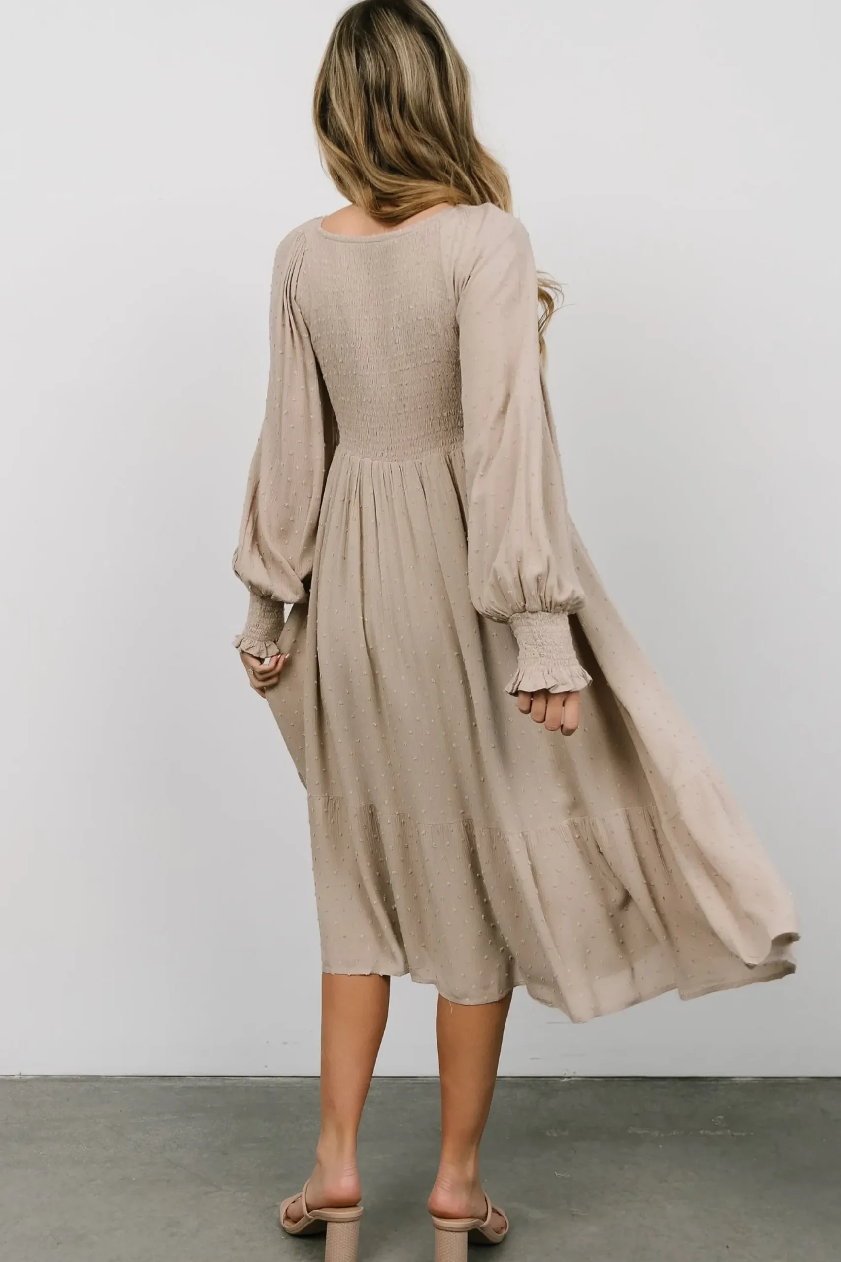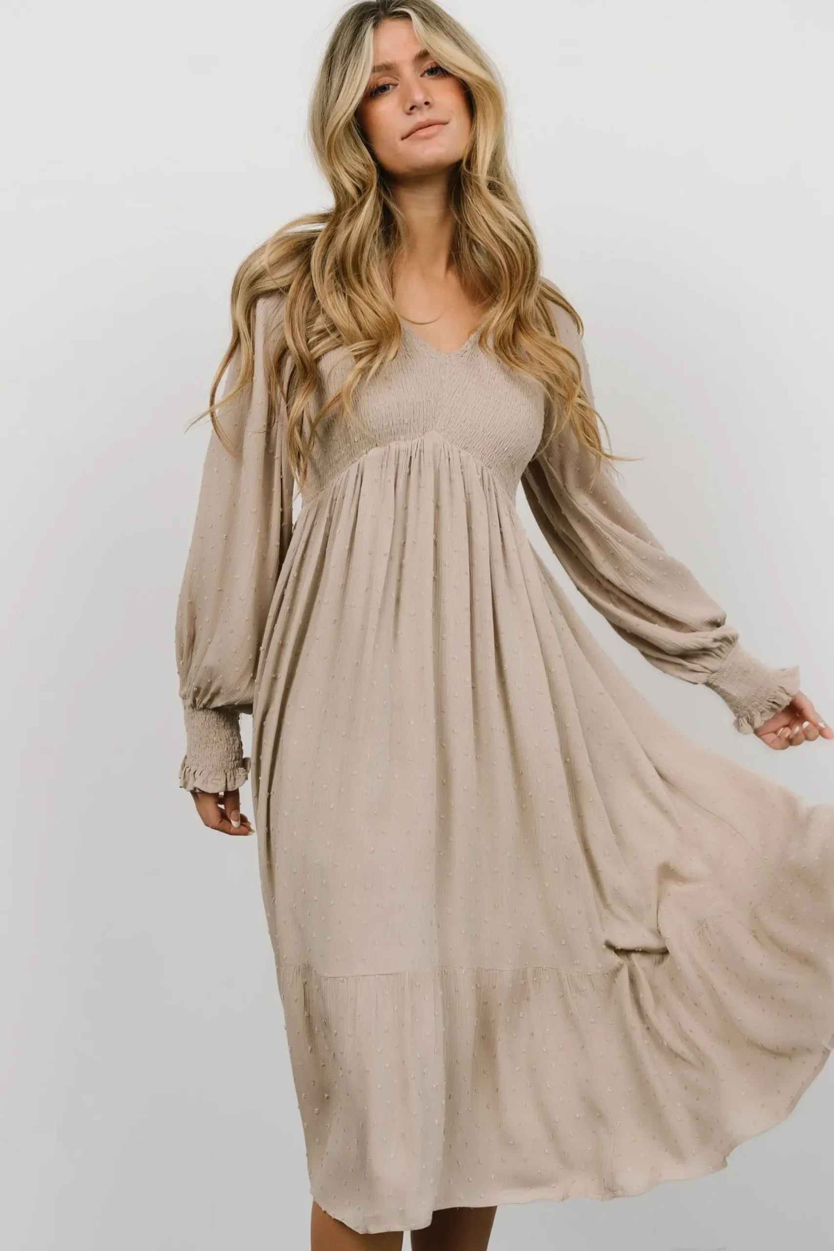 Fashion Baltic Born Lainey Smocked Dotted Midi Dress | Beige