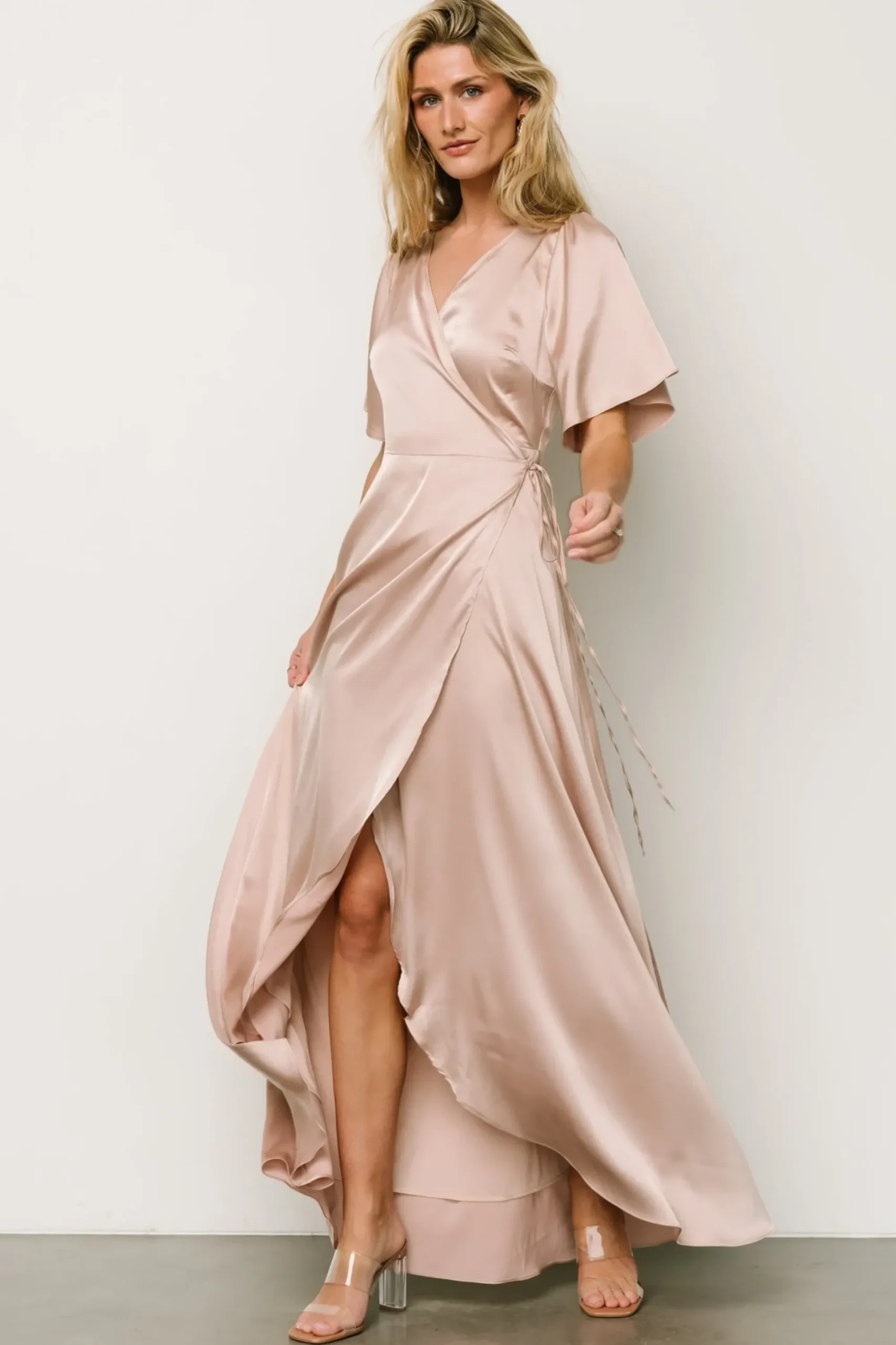 Fashion Baltic Born Vara Satin Maxi Wrap Dress | Champagne