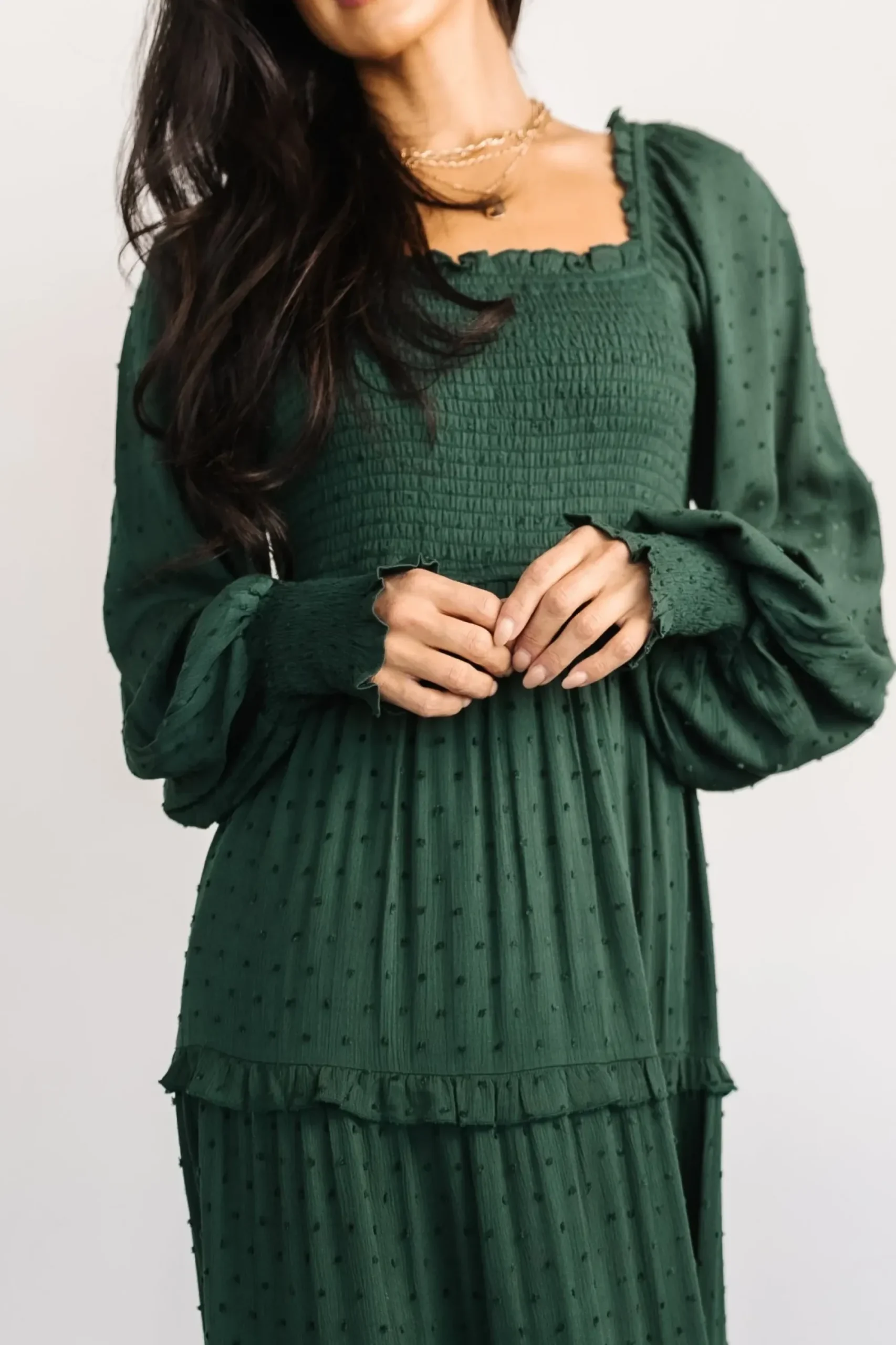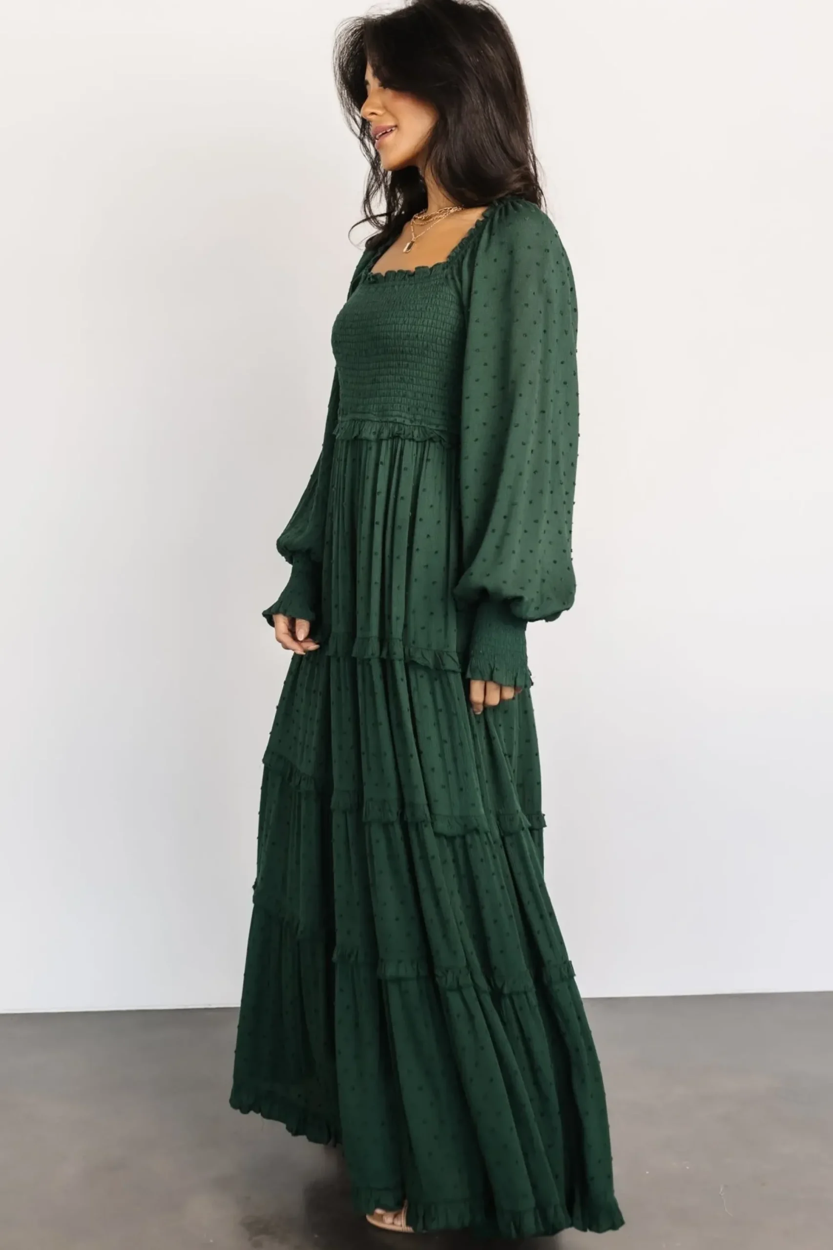 Hot Baltic Born Amanda Smocked Dotted Maxi Dress | Evergreen
