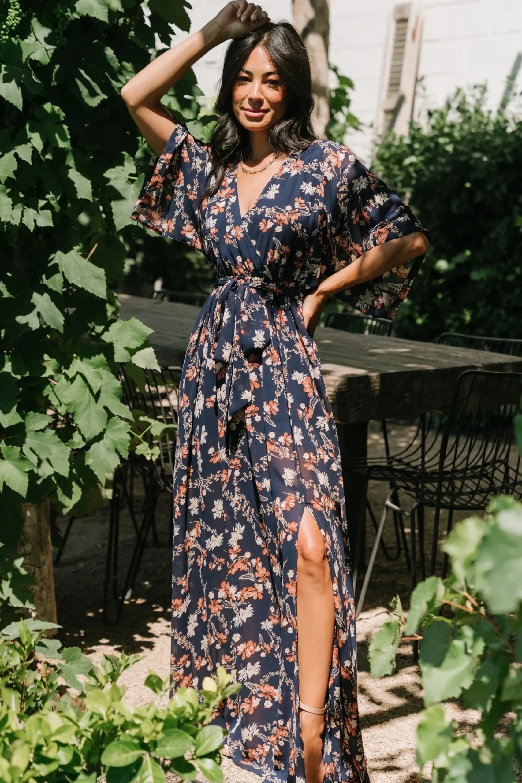 Hot Baltic Born Kia Kimono Maxi Dress | Dark Blue Floral
