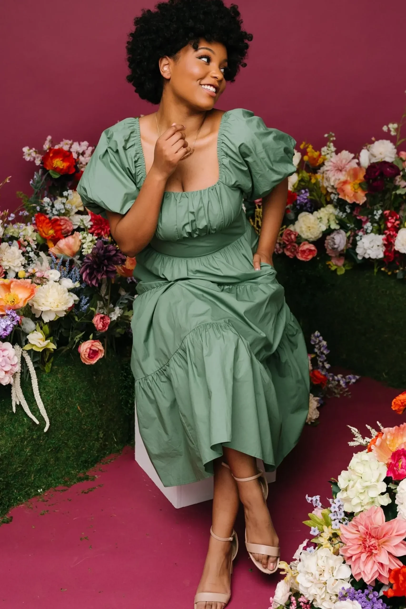 New Baltic Born Cindy Puff Sleeve Tiered Dress | Dusty Green