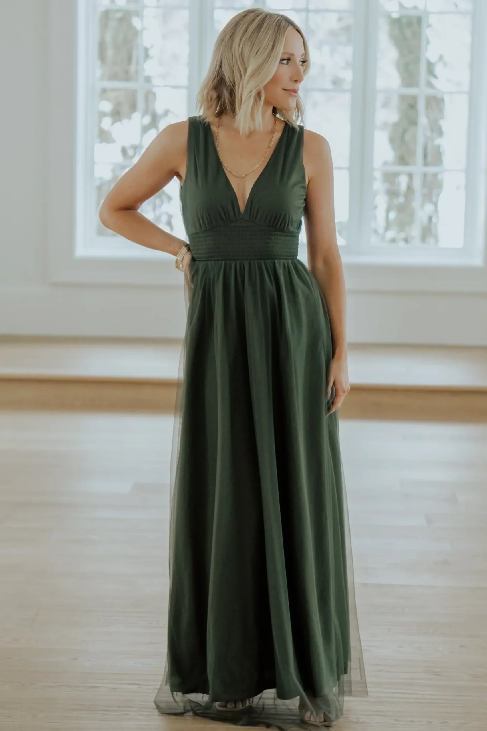 New Baltic Born Kamila Tulle Maxi Dress | Juniper Green