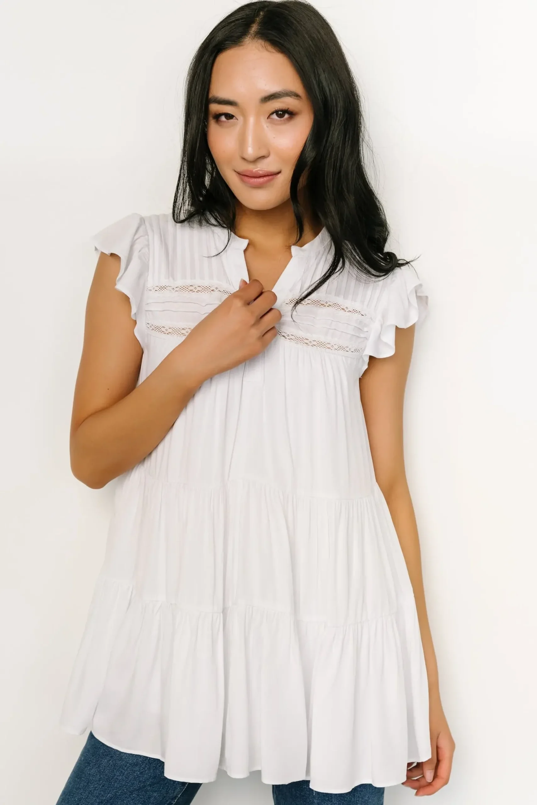 Be the first to review “New Baltic Born Margaret Tiered Top | White” Cancel reply