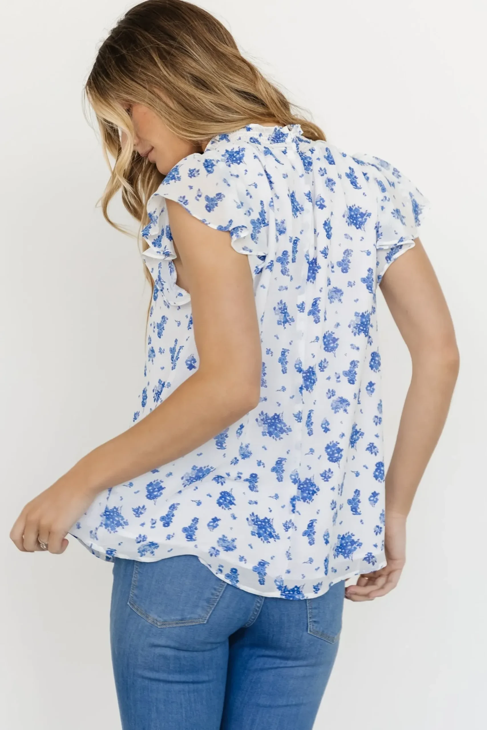Online Baltic Born Leah Mock Neck Top | White + Blue Floral