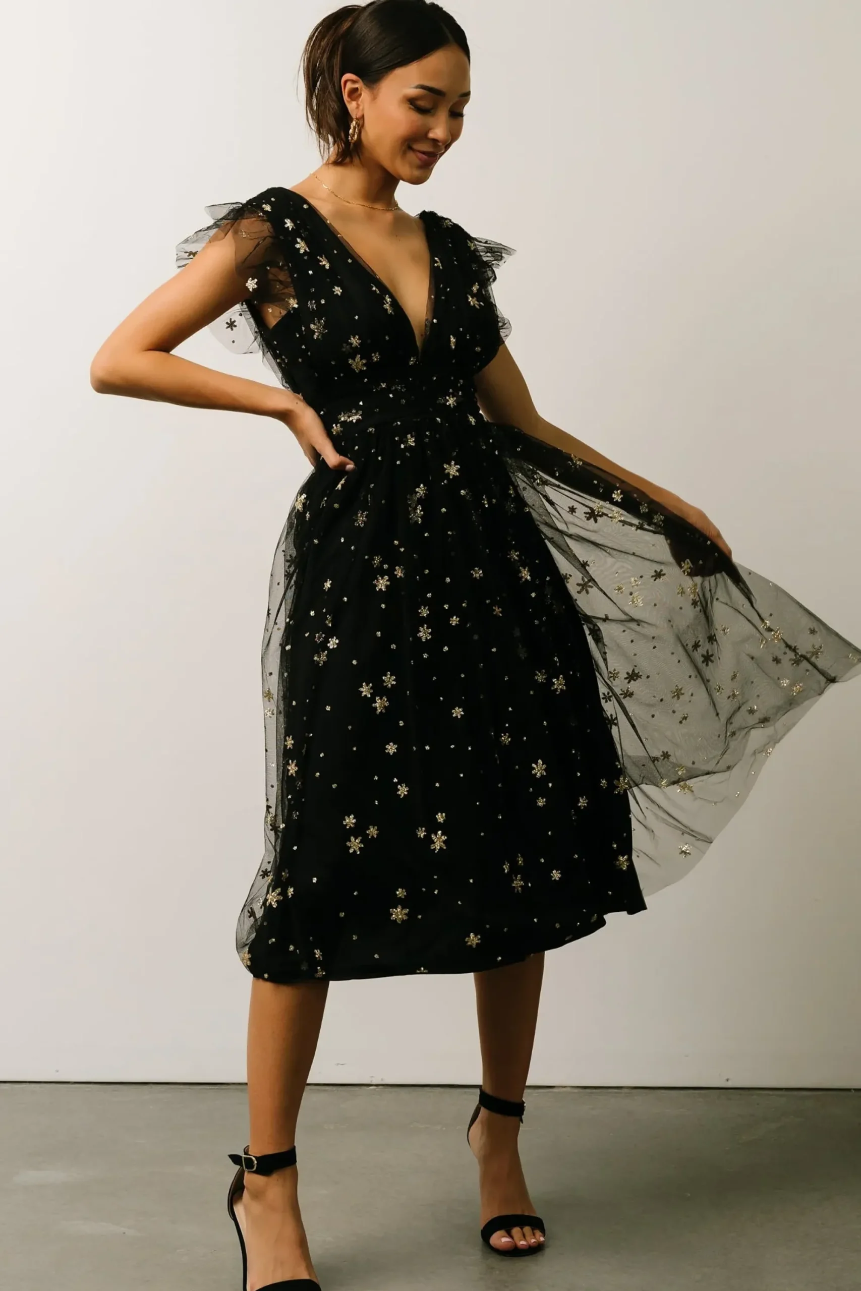 Outlet Baltic Born Chiara Shimmer Midi Dress | Black + Gold
