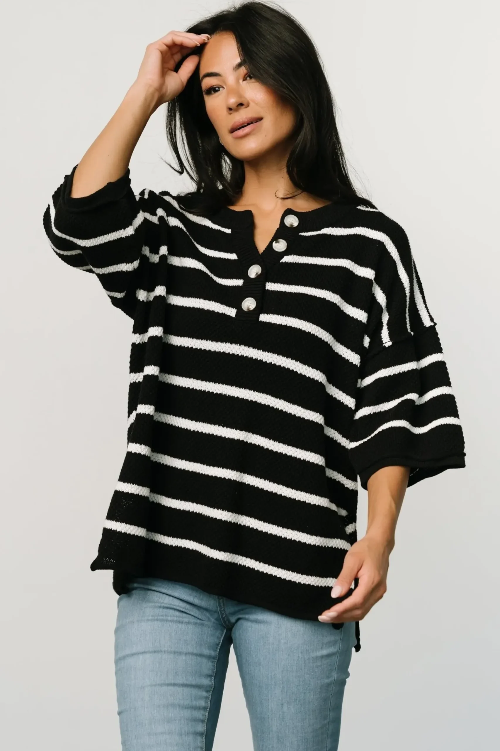 Be the first to review “Outlet Baltic Born Maddock Stripe Knit Top | Black + Off White” Cancel reply