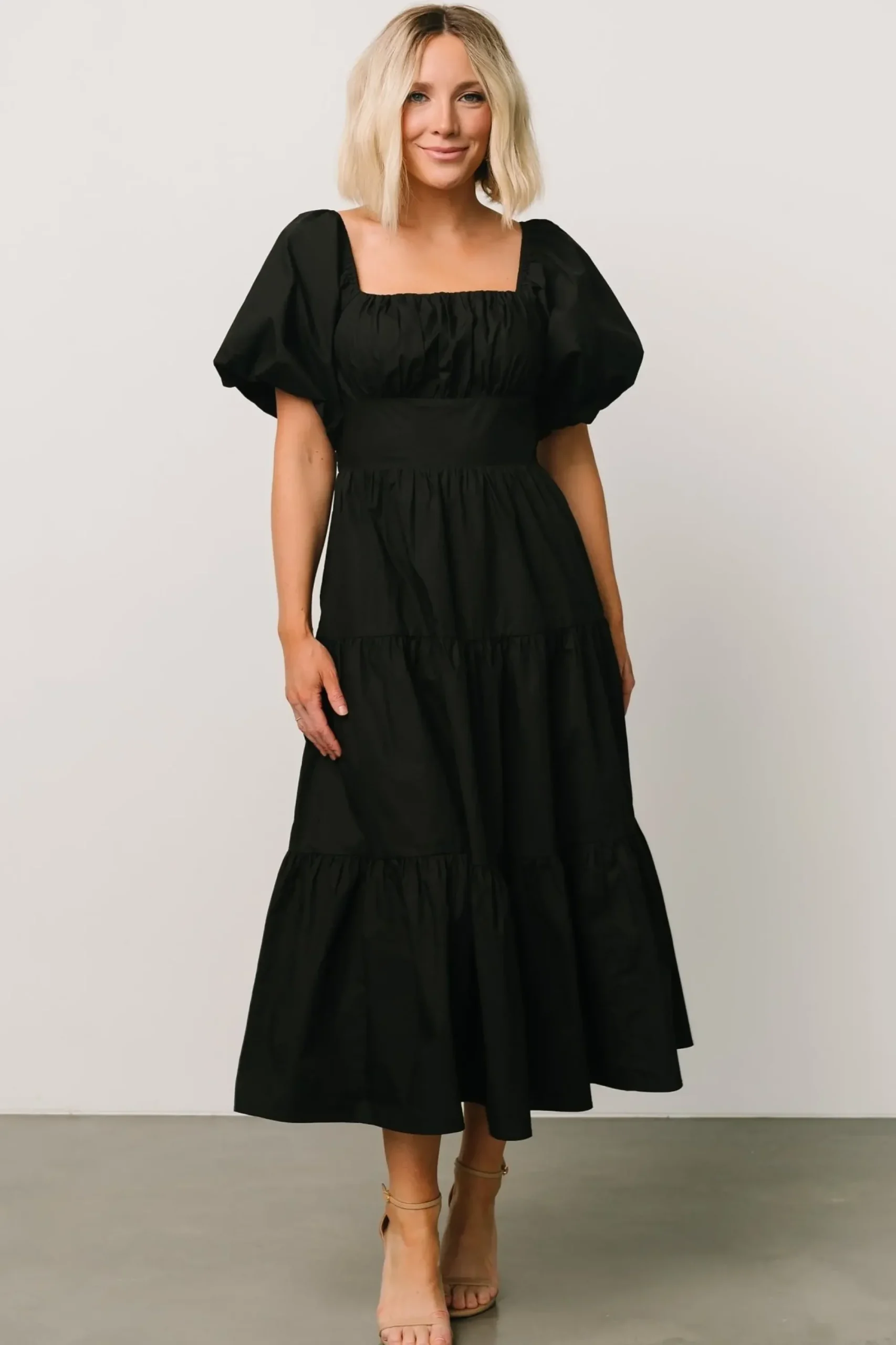 Sale Baltic Born Cindy Puff Sleeve Tiered Dress | Black