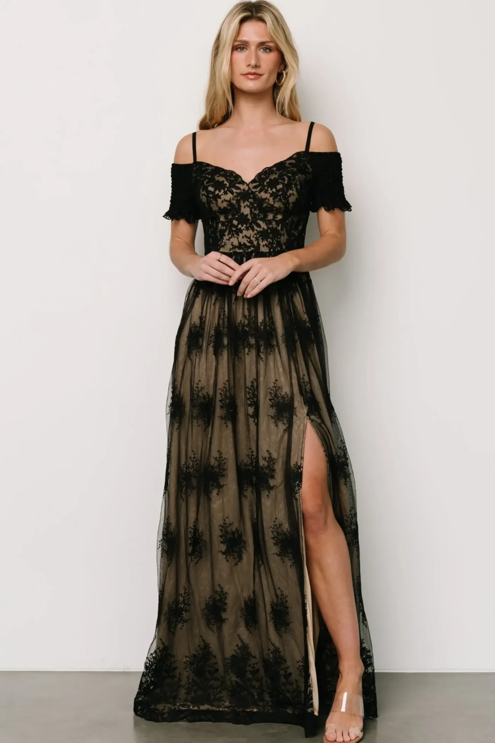 Sale Baltic Born Esperanza Tulle Embroidered Maxi Dress | Black + Nude