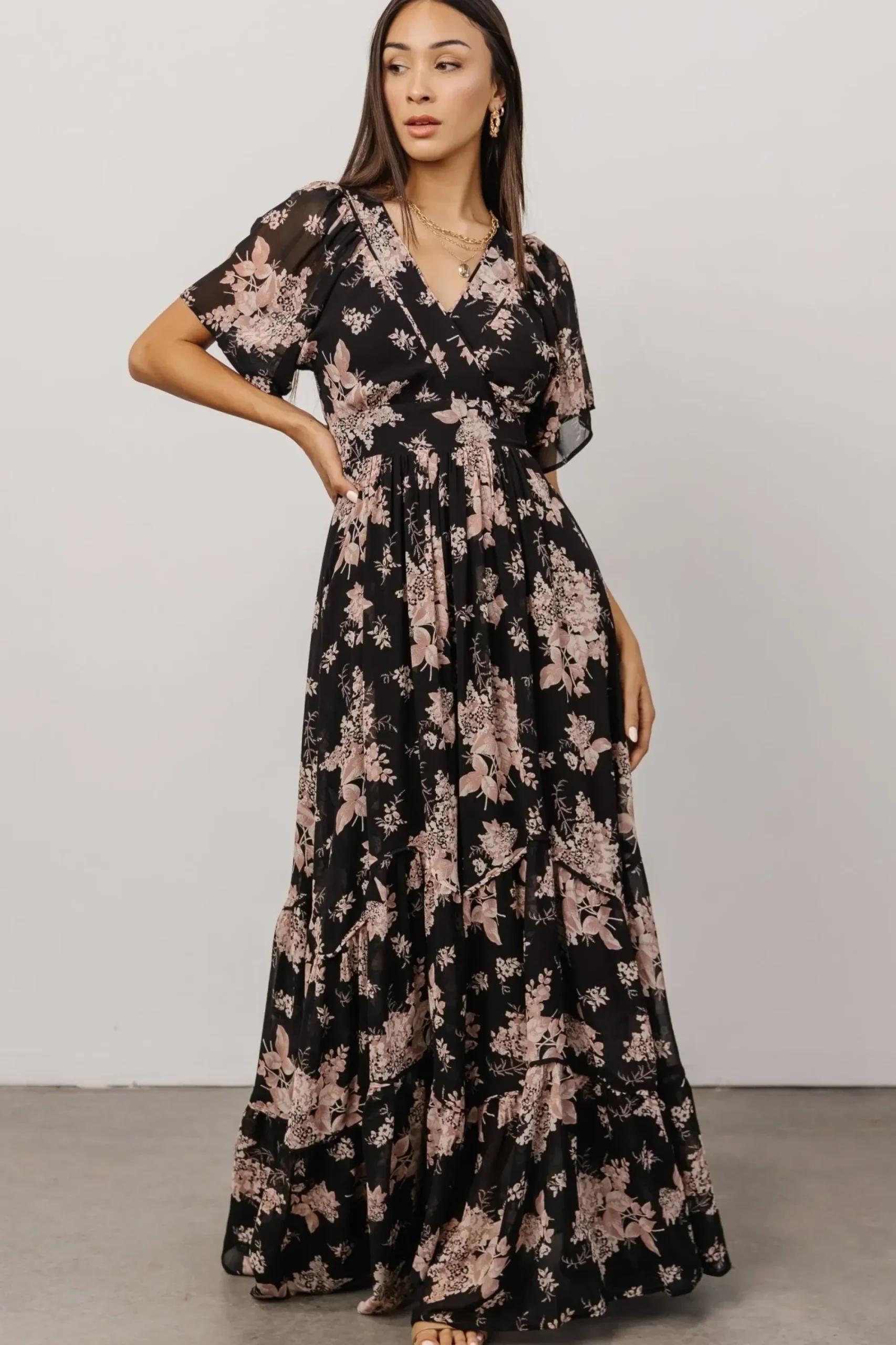 SKU: SKUktnv04o0rj Categories: Bump Friendly, DRESSES, EXTENDED SIZING, Maxi Dresses, SHOP Tags: Baltic Born, Black + Blush Floral Brand: Baltic Born
